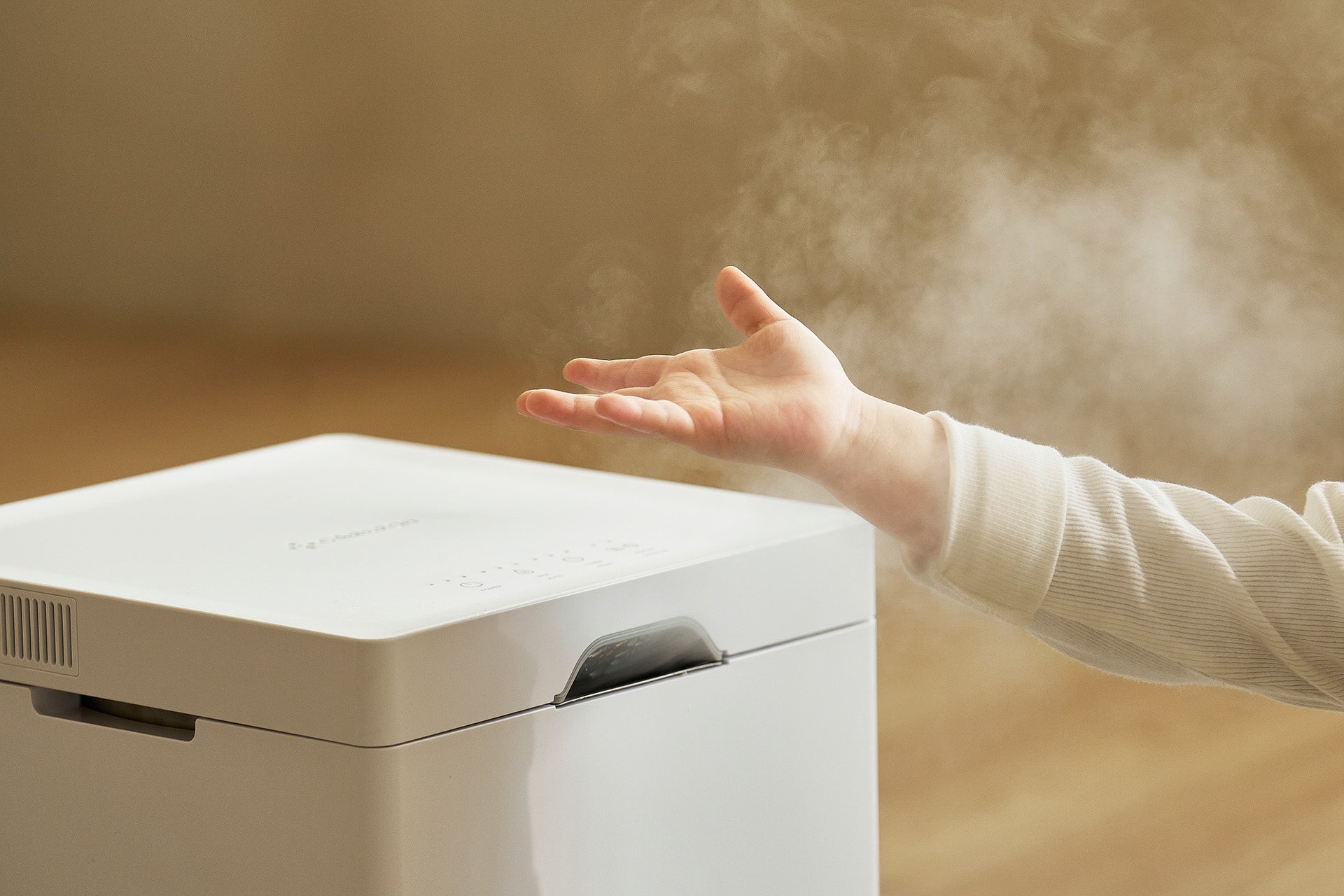ケアポッドは、低温スチーム式を採用。従来のスチーム式加湿器のように高温蒸気を発生させないため、火傷の心配がなく、子どもやペットのいる家庭でも安心して使用できます。