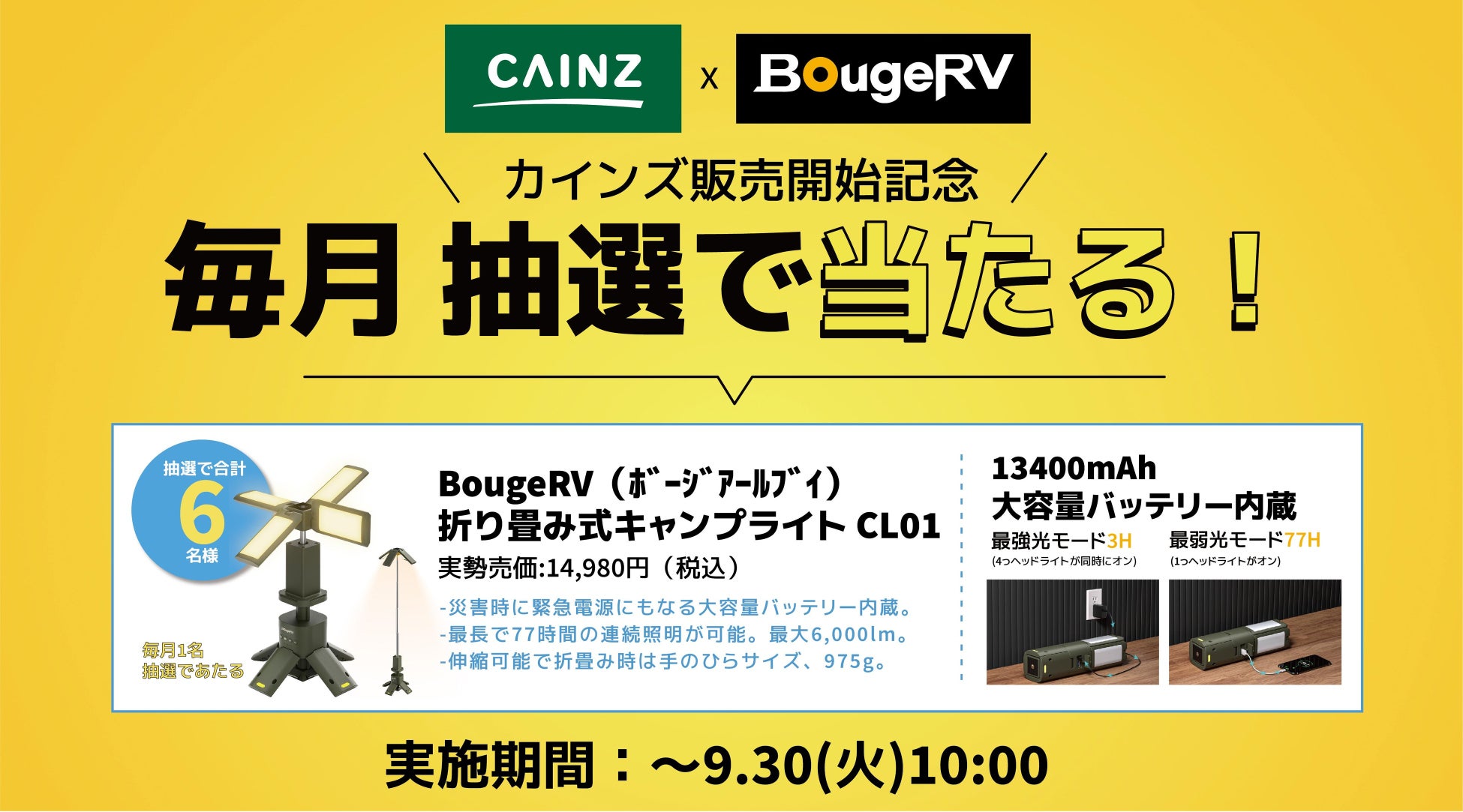 アウトドア生活ソリューションを提供するISSYZONE JAPAN株式会社(本社:東京都台東区、取締役社長:王冲衡、日本語読み:イシーゾン)のブランド、BougeRV(日本語読み:ボージアールブィ)は、関東地方を中心にホームセンターを展開する大手小売業CAINZで自社製品の販売を開始致します。