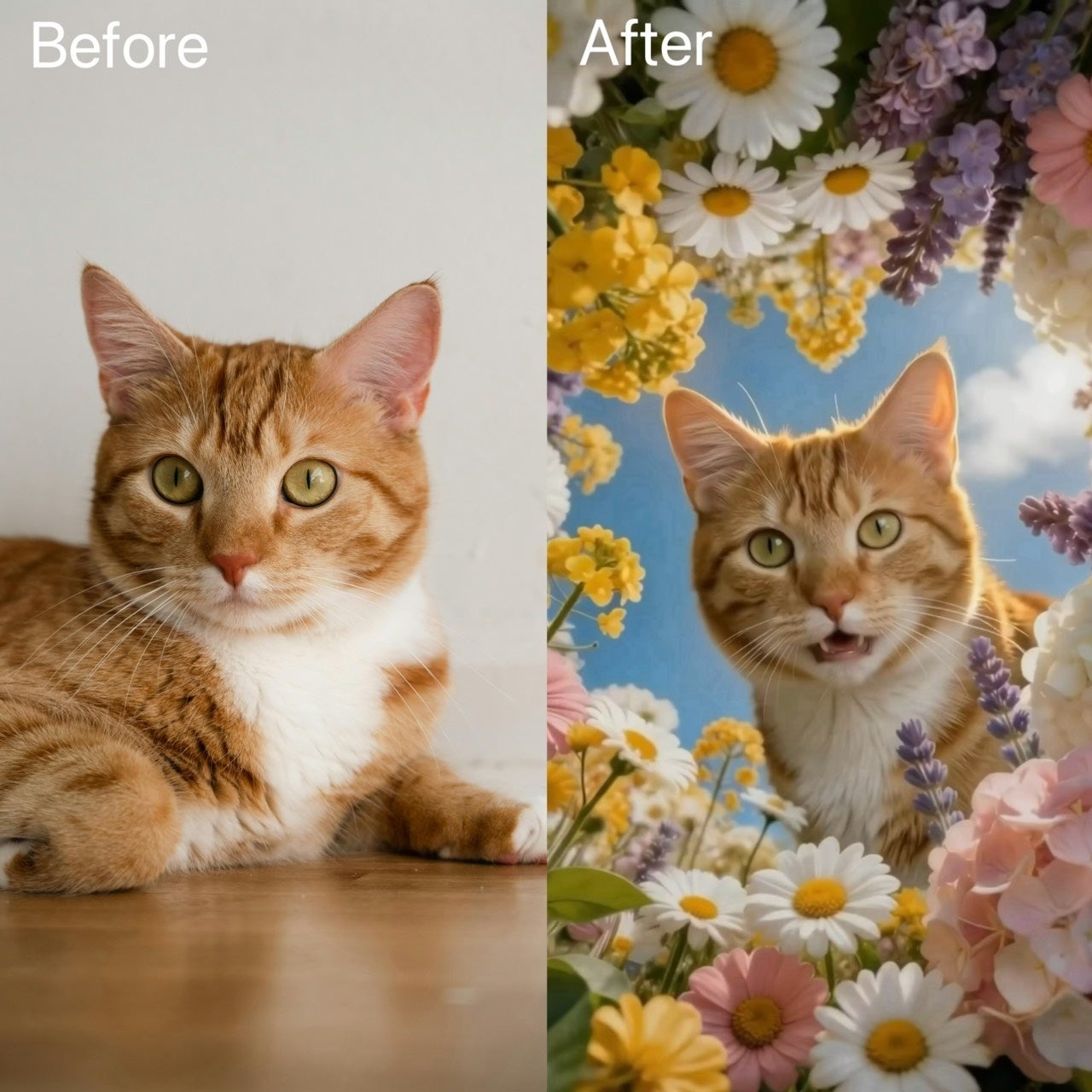 作成方法は非常にシンプルで、写真を1枚読み込むだけ。アプリが自動で、春にぴったりの花畑でペットが遊んでいるような雰囲気の待受画面を生成します。ゴールデンウィークの旅行の雰囲気にもピッタリ。忙しい日々の中でも、手軽に特別な体験を楽しむことが可能です。