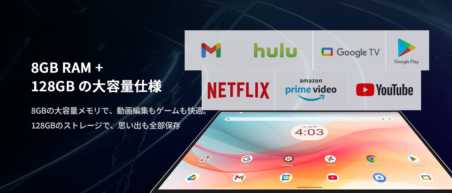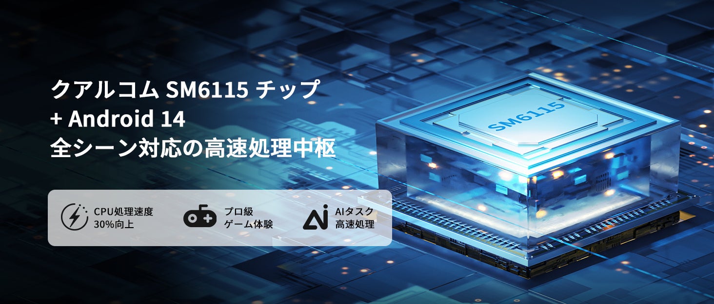 前面には500万画素オートフォーカスカメラを搭載。ビデオ会議(Google Meet/Zoom)やオンライン授業でのライト調整も自動で行われ、明瞭な映像と内蔵6Wデュアルステレオスピーカーによるクリアな音声で、遠隔でのコミュニケーションを格段に向上させます。