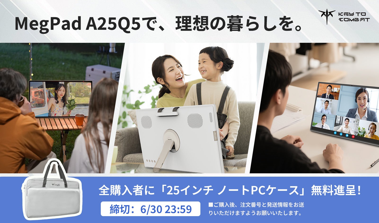 モバイルワークとエンターテインメントの境界きょうかいを溶とかす、画期的かっきてきなスマートモニターがついに日本にっぽん上陸じょうりく。Key To Combatは本日ほんじつ、25インチの大だい画面がめんでありながら驚異きょういの携帯けいたい性せいとパワフル性能せいのうを兼かね備そなえたポータブルスマートモニター「MegPad A25Q5」の発売を発表。