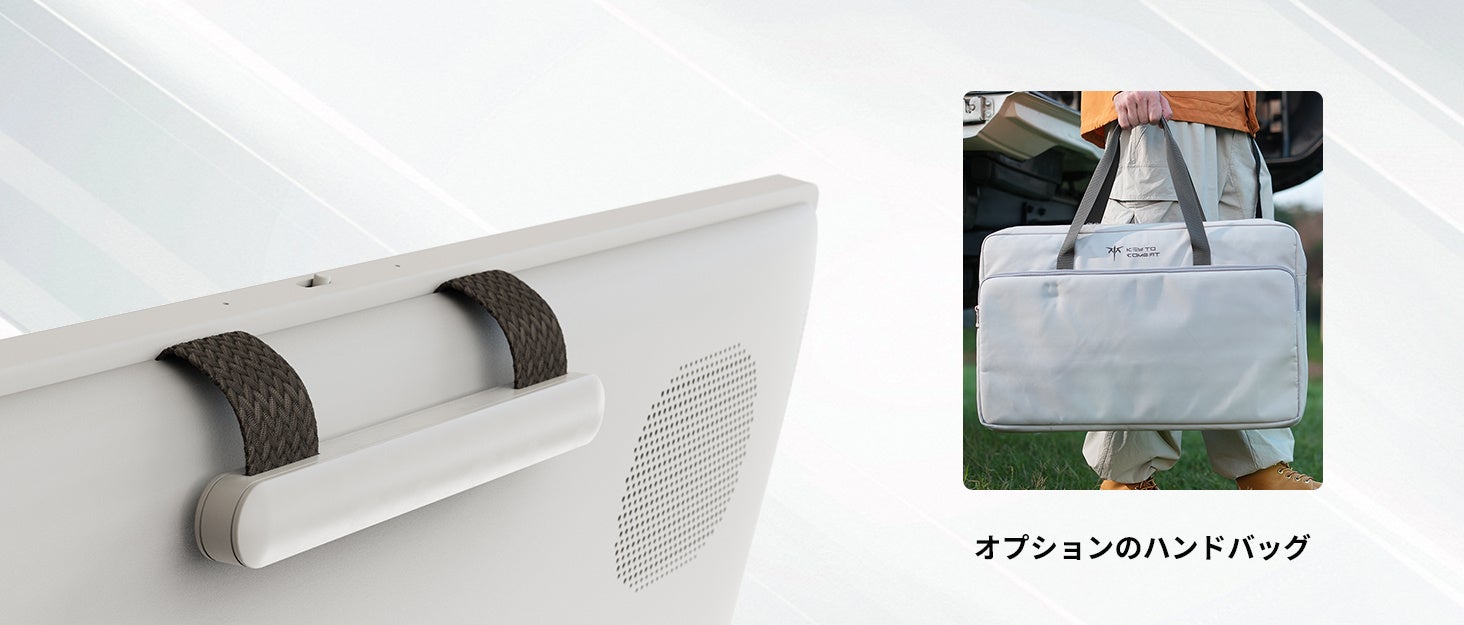 A25Q5の真骨頂は、その圧倒的な携帯性と多様なシーン対応力にあります。片手で楽々持ち運べる専用ハンドルを装備。通勤・通学の電車内で片手に持ってニュースをチェックしたり、出張先の空港や会議室間の移動をスムーズにこなしたり。鞄に入れて保護も万全です。専用ベースプレートでスタンディングモードも可能。