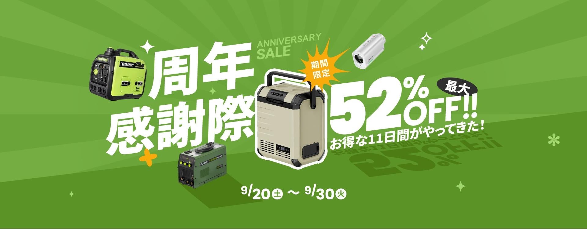 周年を記念し、2025年9月20日(土)~9月30日(火)の期間中、公式サイトでは最大52%OFFとなる「1周年感謝祭・期間限定セール」を開催。また、EENOUR公式SNSアカウントでも、抽選で豪華賞品が当たるプレゼントキャンペーンも実施いたします。