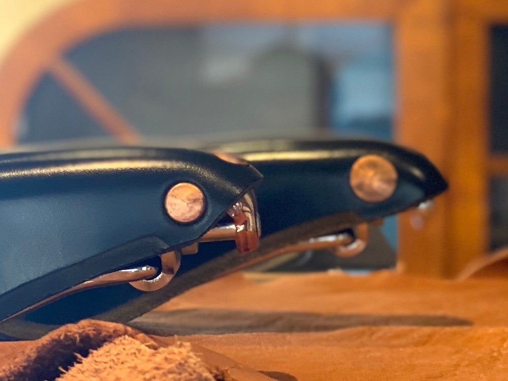 手打ち鋲を使用したSPECIALモデルに共通となったレザーのエッジ部分のカット