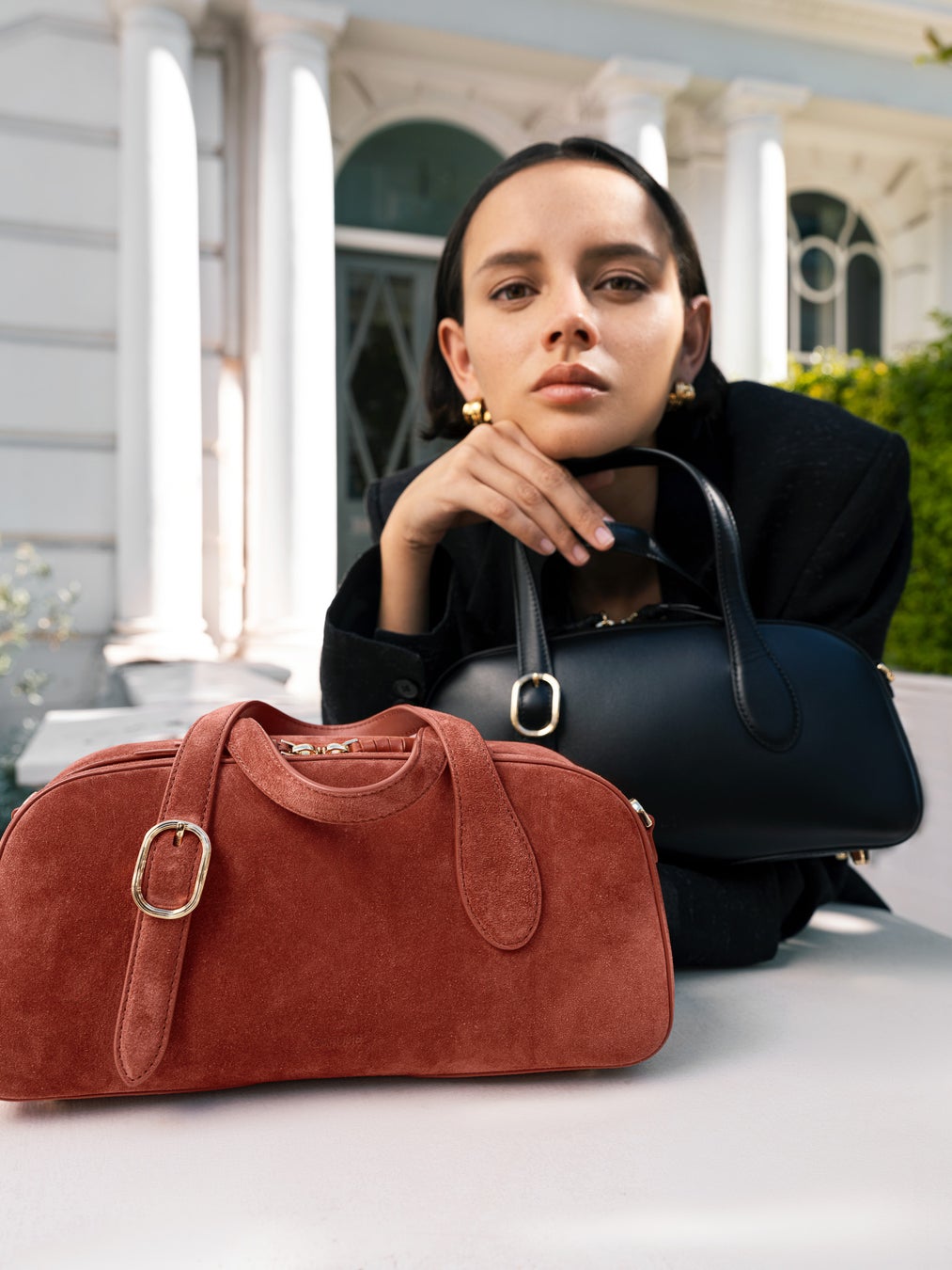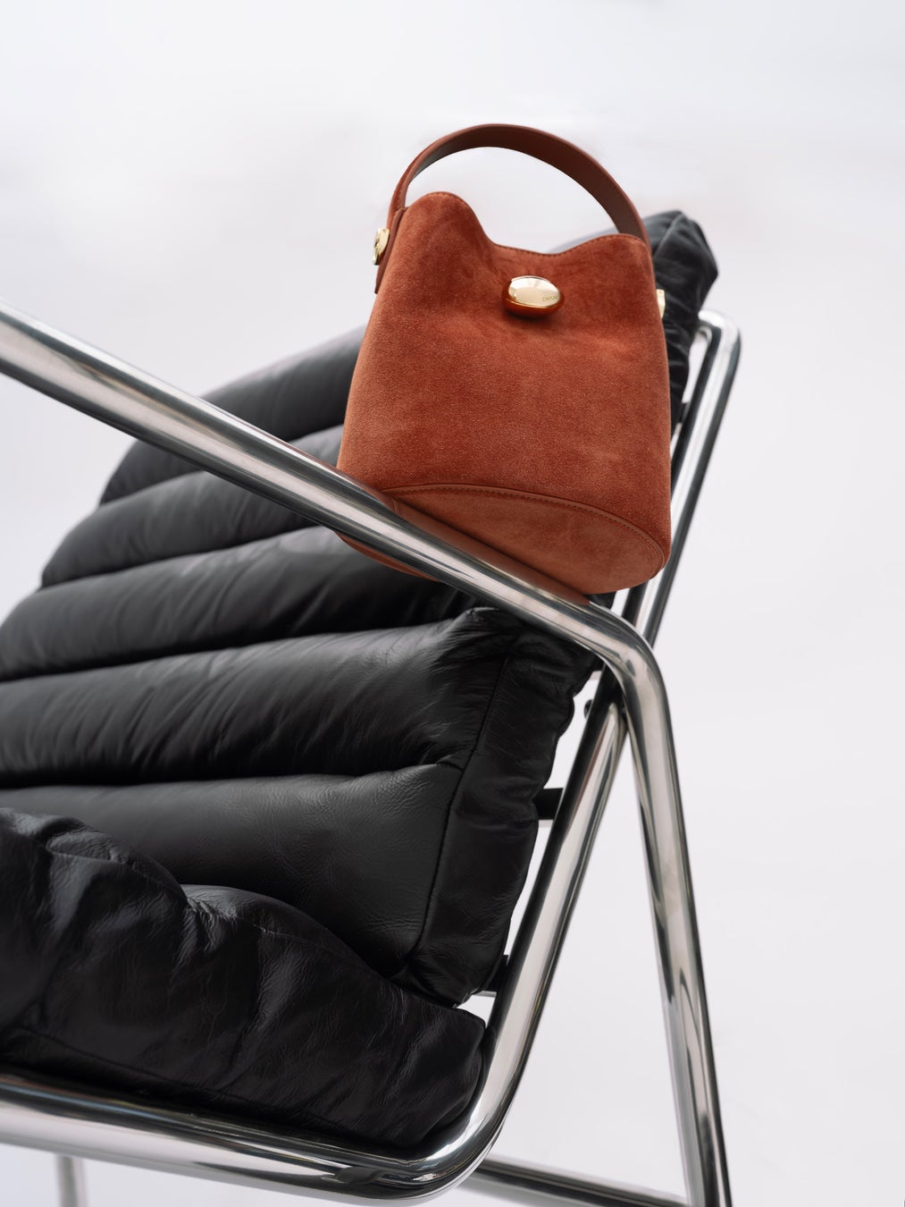 カジュアルなボストンバッグのフォルムに洗練されたエレガントな佇まいをプラス。上質なスウェードが更なる高級感を演出。