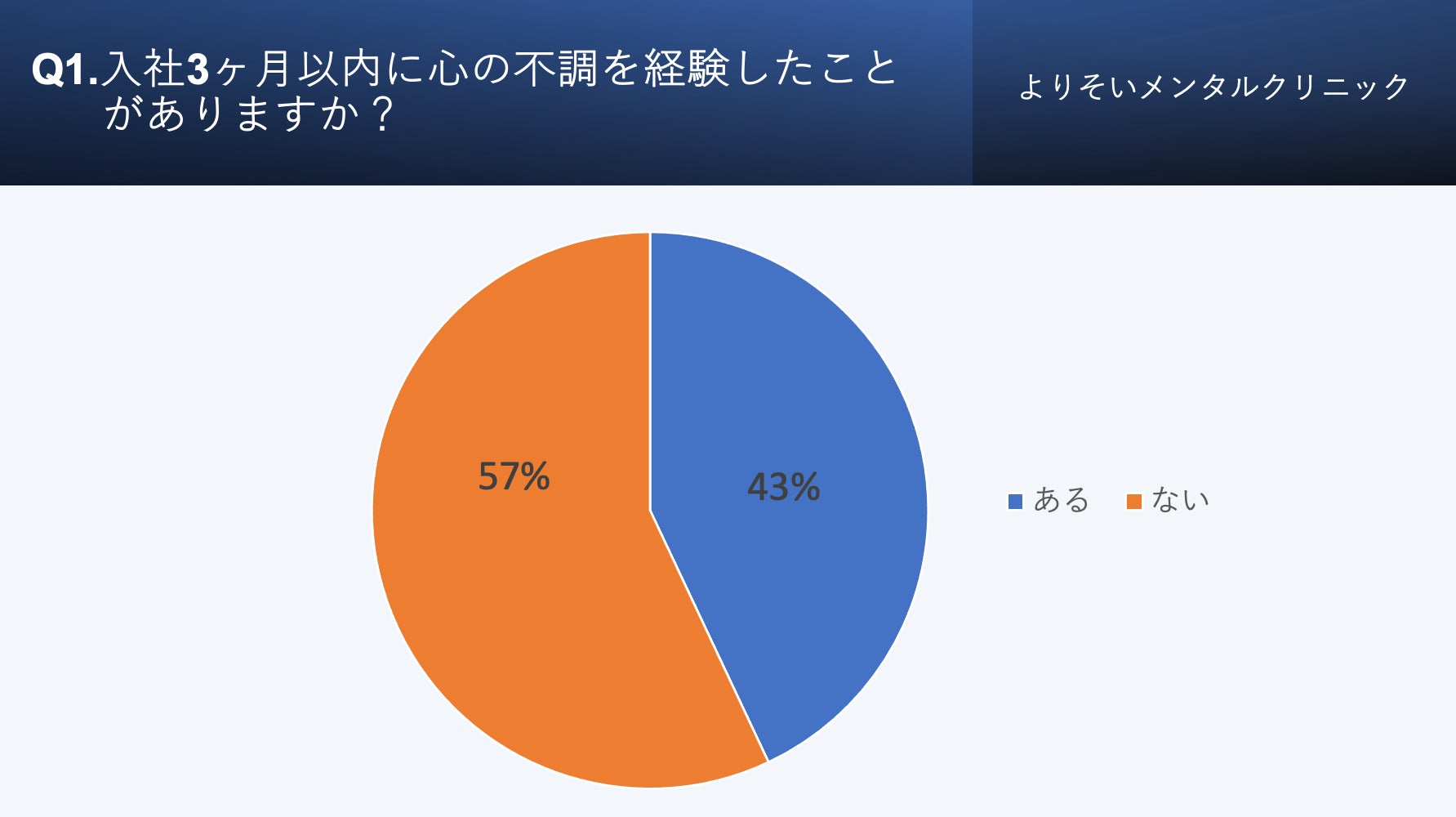 その結果、約43%の方は入社3ヶ月以内に心の不調を経験していることが分かりました。