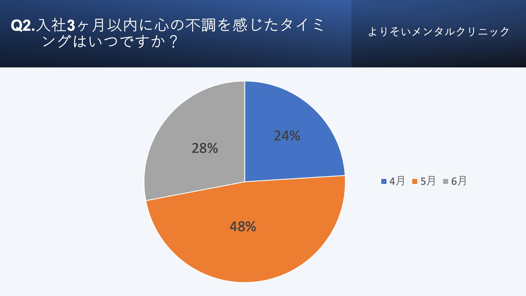 入社3ヶ月以内に心の不調を経験した方に対して不調を感じたタイミングを調査しました。