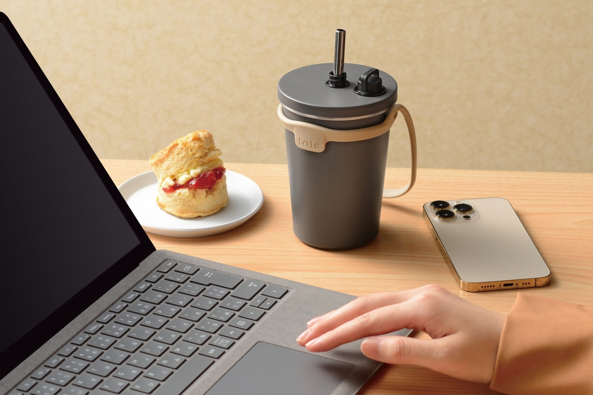 和平フレイズよりストローを入れたまま蓋を閉められる「トート ストロー付2wayタンブラー」に320mlのアイボリー・チャコールが新登場!