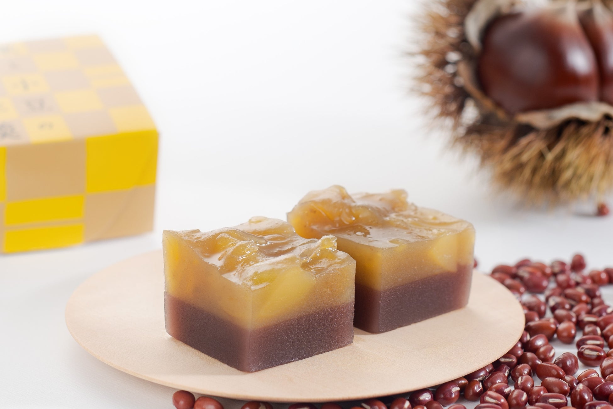 栗の甘露煮を入れた栗羊羹と 北海道産小豆のこし餡羊羹を重ねました。ほんのり秋の気配を感じさせる、季節の移ろいを味わう一品です。
