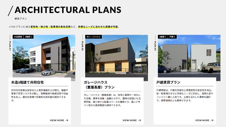 ZEH水準の環境性能やIoT設備を活用した高付加価値型木造賃貸住宅プランを追加。差別化と安定収益を両立する設計提案を強化しました。