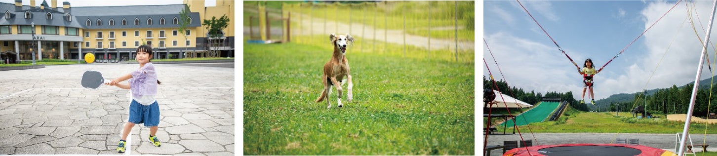 ⽇本有数の⼤⾃然と広⼤な敷地を誇るプレミアムな複合リゾート「ロッテアライリゾート」(運営:株式会社 LOTTE Hotel Arai、所在地:新潟県妙⾼市、代表:福井 朋也)は、2025 年 7 ⽉ 19 ⽇(⼟)より、既存の「アドベンチャーパス」対象の⼈気アクティビティ9種類に加え、新たに登場するスカイロケット、ピックルボール、ドッグランなど8種類のコンテンツ、さらには屋内外プールと温泉も 1 ⽇中遊び尽くせる「ぜんぶ遊び放題パス」の販売を開始いたします。ご家族皆さまで、この夏から秋にかけてのロッテアライリゾートを⼼ゆくまでお楽しみいただける、まさに“フルパッケージパス”です。