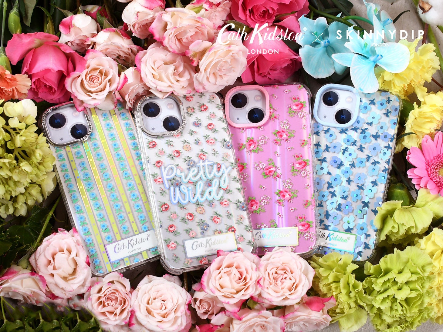 Cath Kidstonが誇るオリジナルのフローラルパターンやアイコニックなモチーフを、SKINNYDIP LONDONらしいグリッターやホログラフィック素材と掛け合わせることで、新たな視点で再解釈しました。