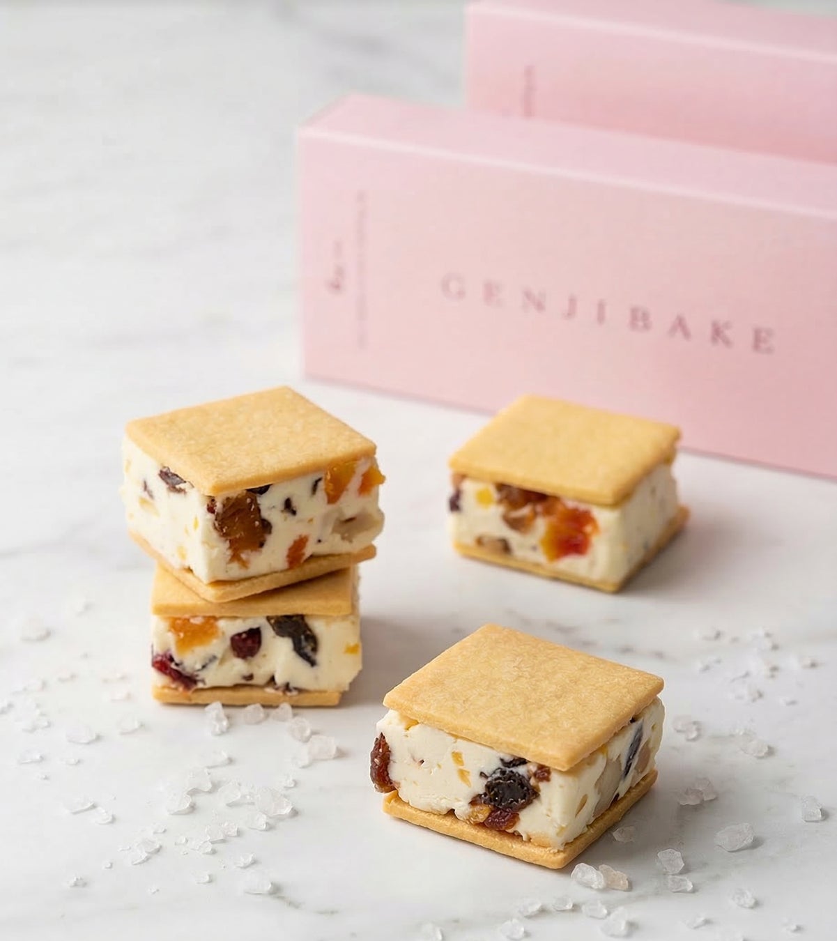 米と塩だけというシンプルな構成ながら、塩の結晶や米の甘み、口どけのバランスによって味わいが広がる一品です。