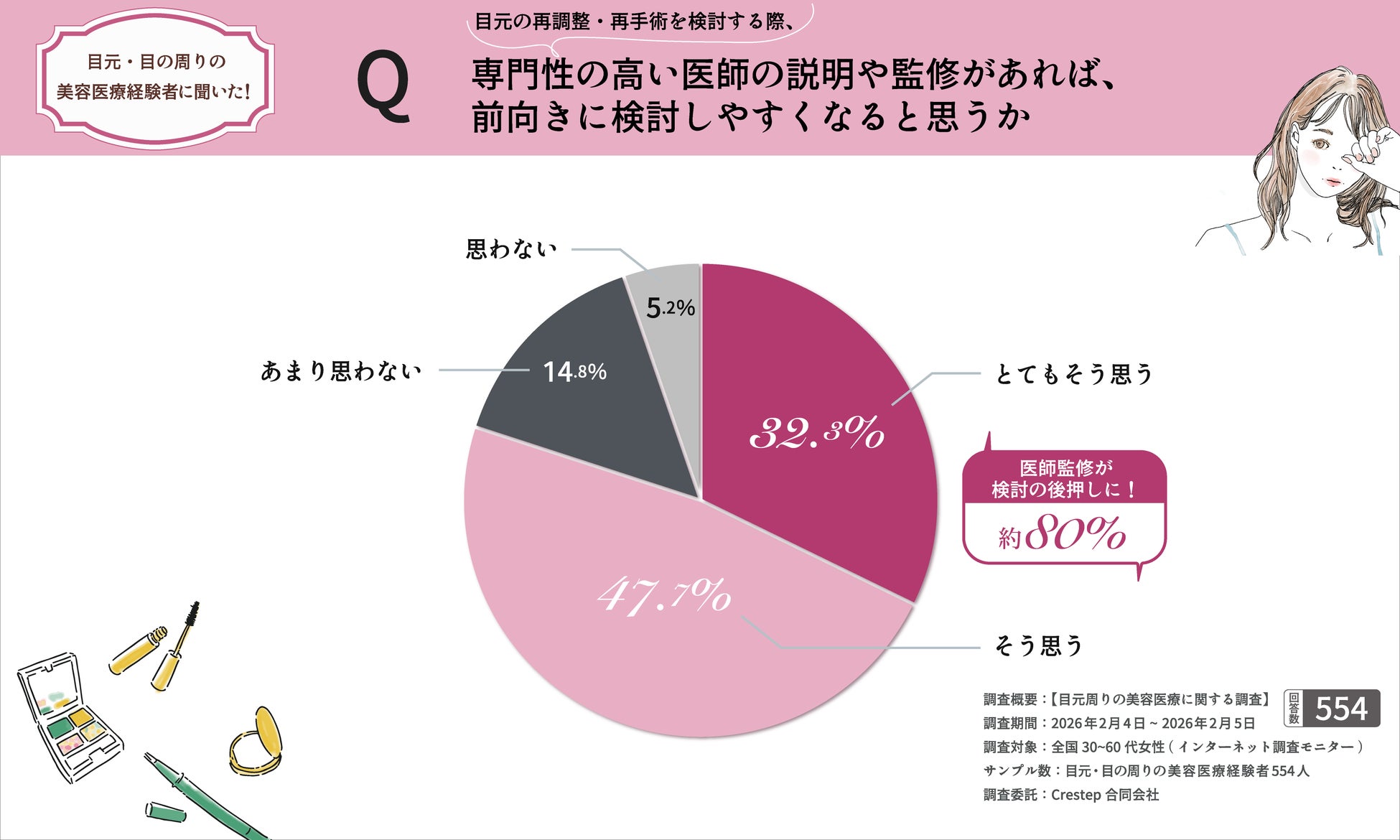 約80%が「専門性の高い医師の説明で前向きに」 二重“再調整”は恐怖より“納得”が決め手