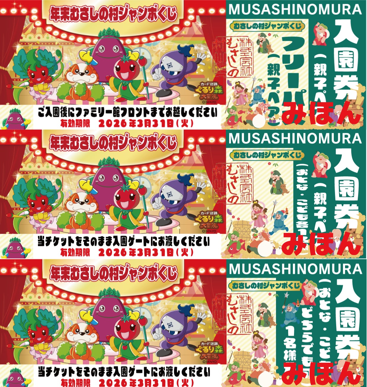 【遊園地むさしの村】2025年最後のとってもお得なイベント!「年末むさしの村ジャンボくじ」12/27(土)~30(火)開催!