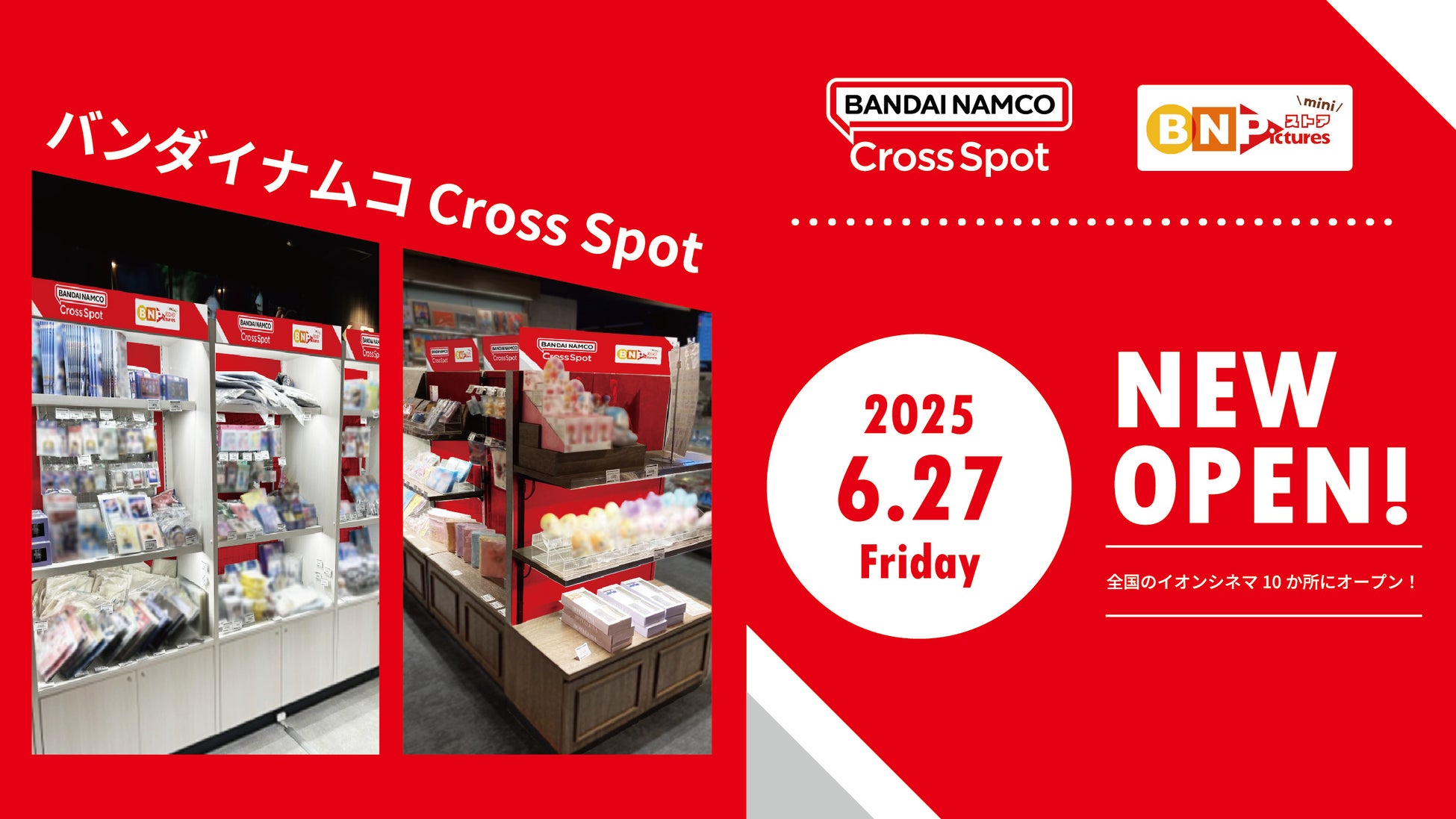 株式会社バンダイナムコエクスペリエンスは、バンダイナムコグループのキャラクターグッズを販売する「バンダイナムコ Cross Spot」を全国のイオンシネマ10か所に2025年6月27日(金)オープンします。