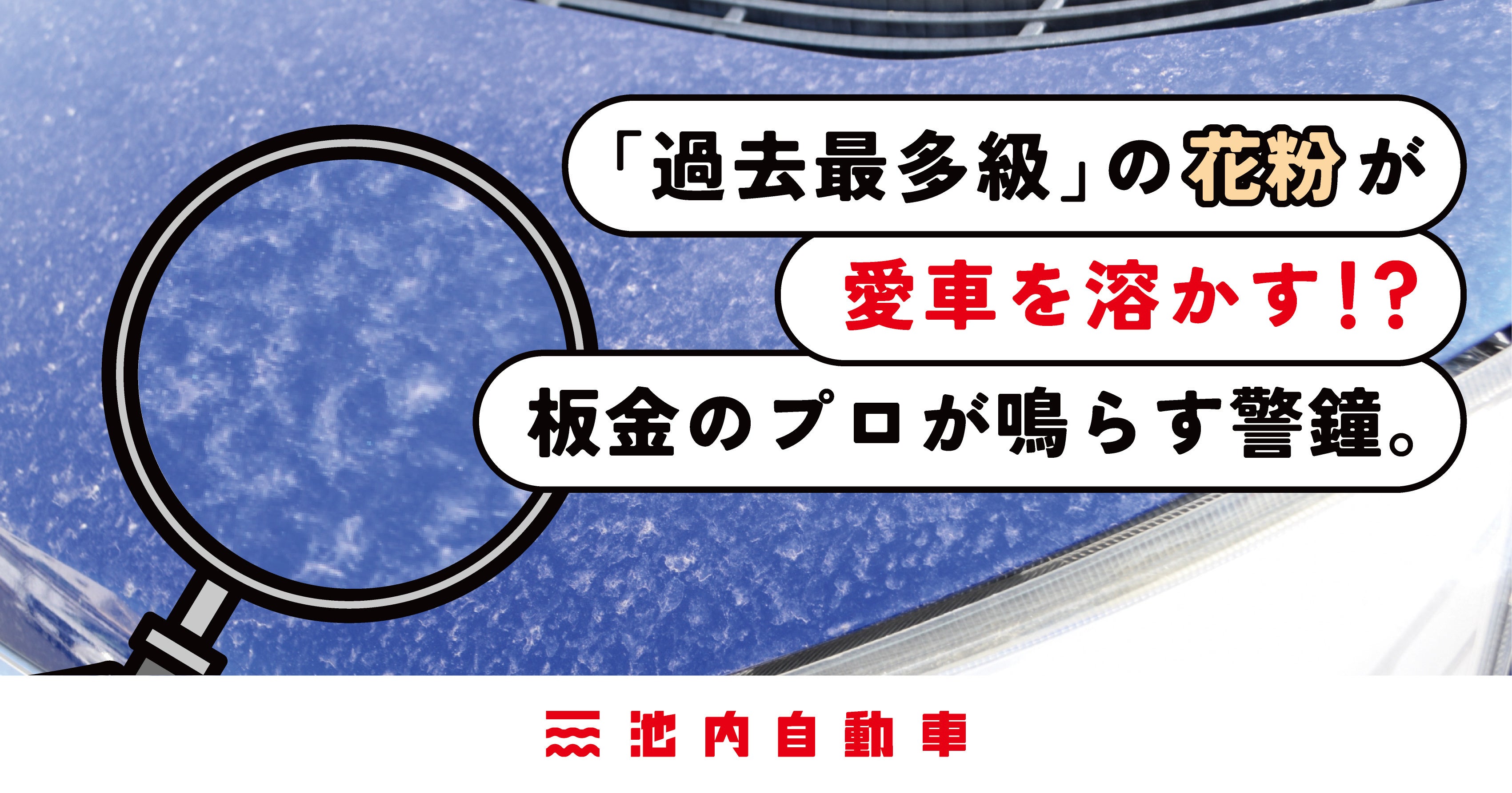 自動車の板金塗装事業を手掛ける株式会社イケウチ(本社:東京都千代田区、代表取締役社長:池内 美友、以下「当社」)は、2026年春に猛威を振るう花粉飛散による車の影響について、カーユーザーに向けて注意喚起の情報を発信します。