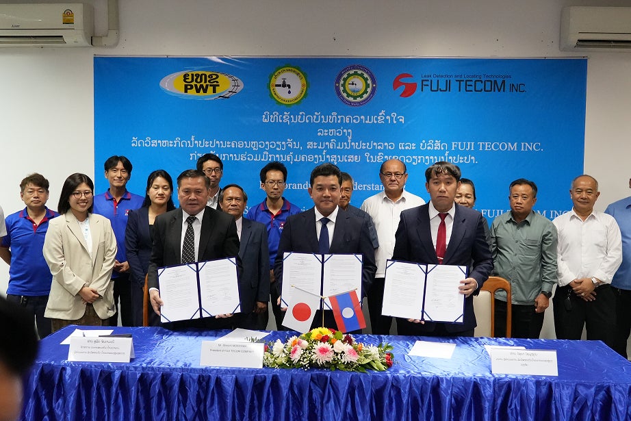 フジテコム株式会社(本社:東京都千代田区、代表取締役社長:森山 慎一、以下:フジテコム)は、2025年9月25日、ラオス人民民主共和国の首都ビエンチャンにおいて、首都ビエンチャン水道公社(NPNL)、ラオス水道協会(LWWA)との間で、ラオス国における無収水率(漏水率)削減技術の強化を目的としたMOUを締結しました。