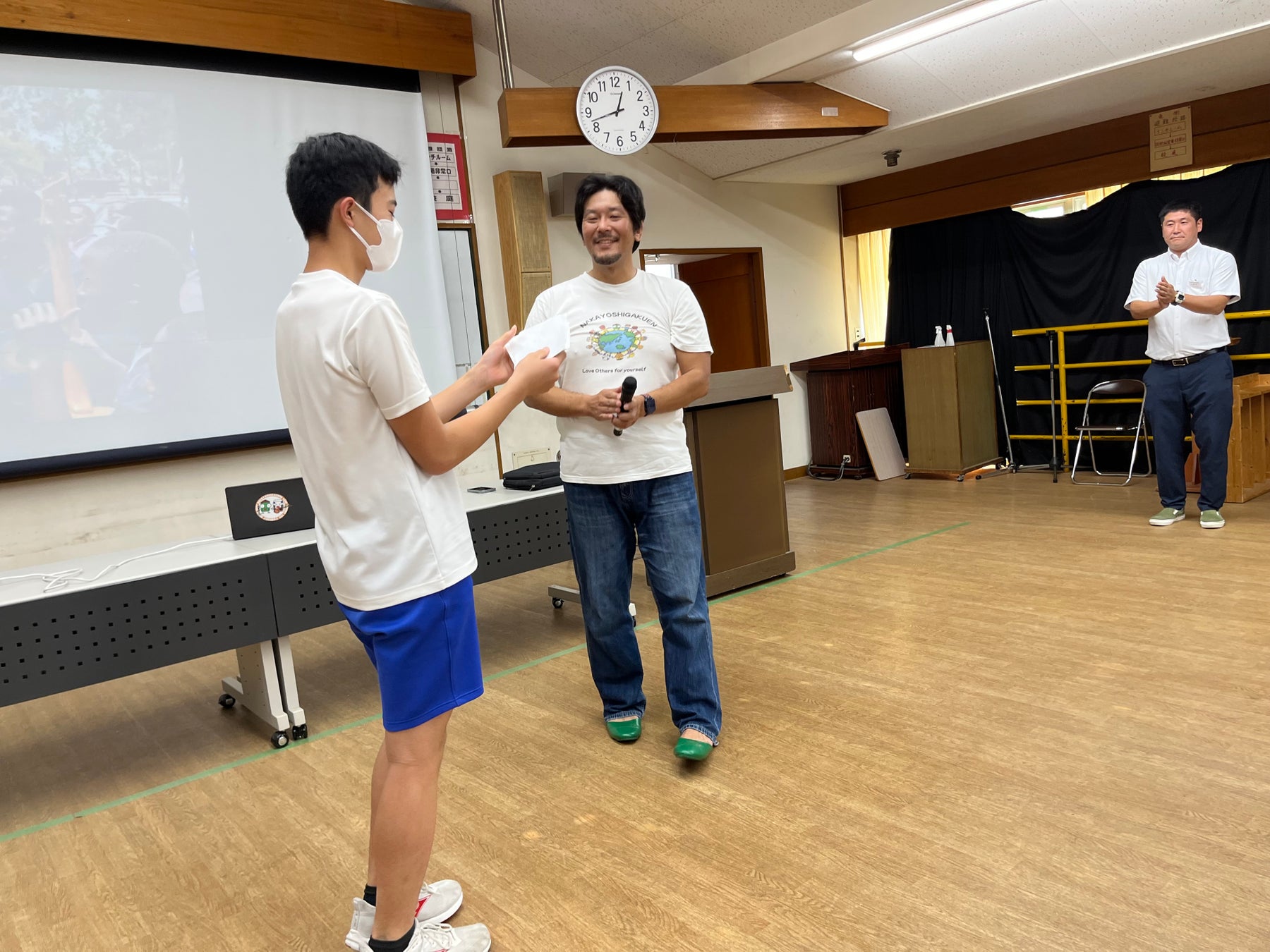 「現実を見てきた中村さんの生の言葉を聞いて、昔は世界は遠かったが、今やっていることで世界を平和にできると感じました。『同じをみつける/同じを作る』ことで、生徒たちに木島平に留まらず世界に目を向けて活動してほしい。」