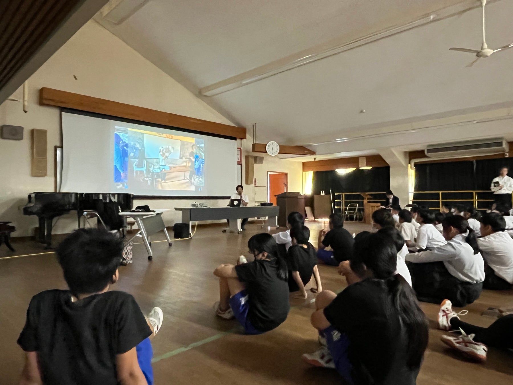今回、なかよし学園はルワンダの児童・生徒から託された手紙を持参し、この講演で生徒を代表して生徒会長に手渡しました。受け取った生徒は「遠いアフリカのルワンダに積み木が届くだけでもすごいのに、その喜びが手紙になって戻ってくるなんて驚きました。正直、とてもうれしいです」と語りました。作品が海を渡り、感謝のメッセージが戻ってくるこの経験は、CoRe Loop(Co-create & Return Loop)――つくる→届ける→共創→還るで「共創と交流で強くなる学び。」を実装する往還モデルの実践そのものとして、全校で共有されました。