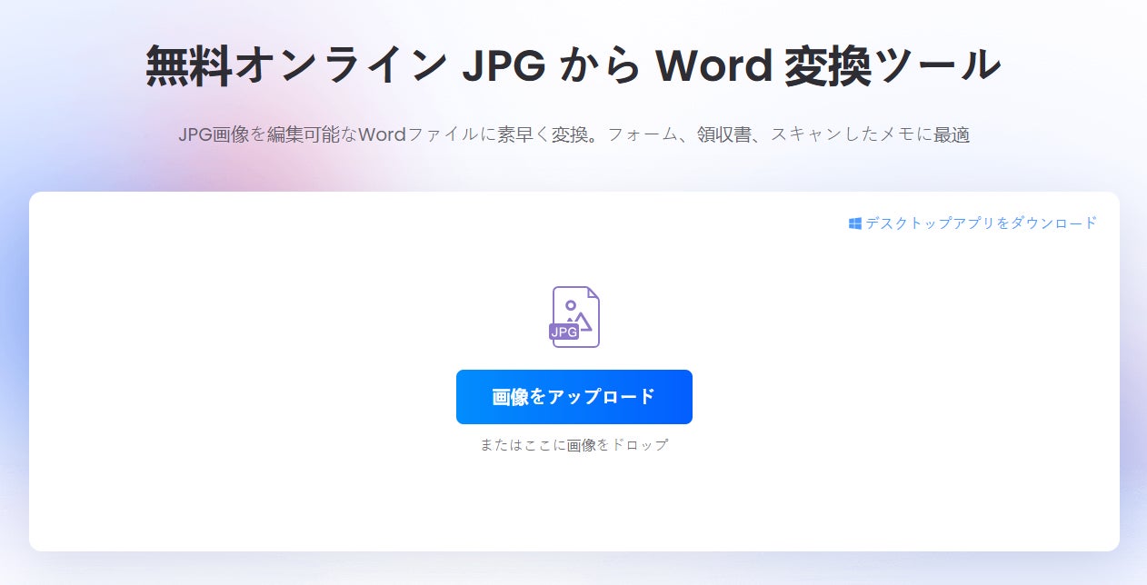 JPG画像を編集可能なWordファイルに高速変換します。申請書、領収書、スキャンされたノートなど、再編集が必要な文書作業に適しています。