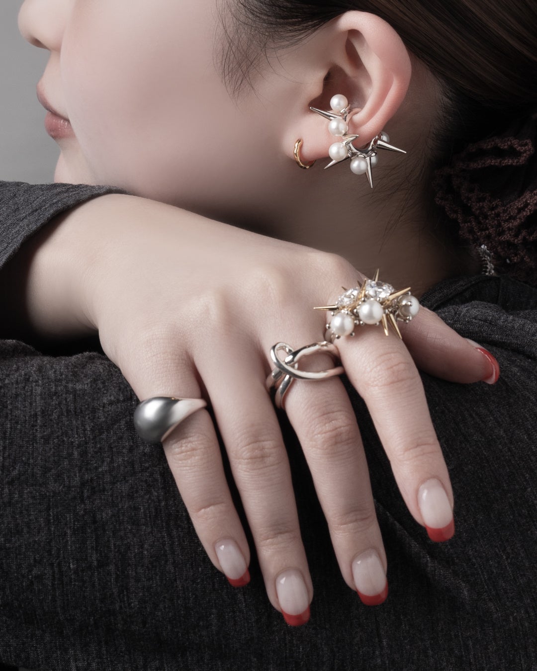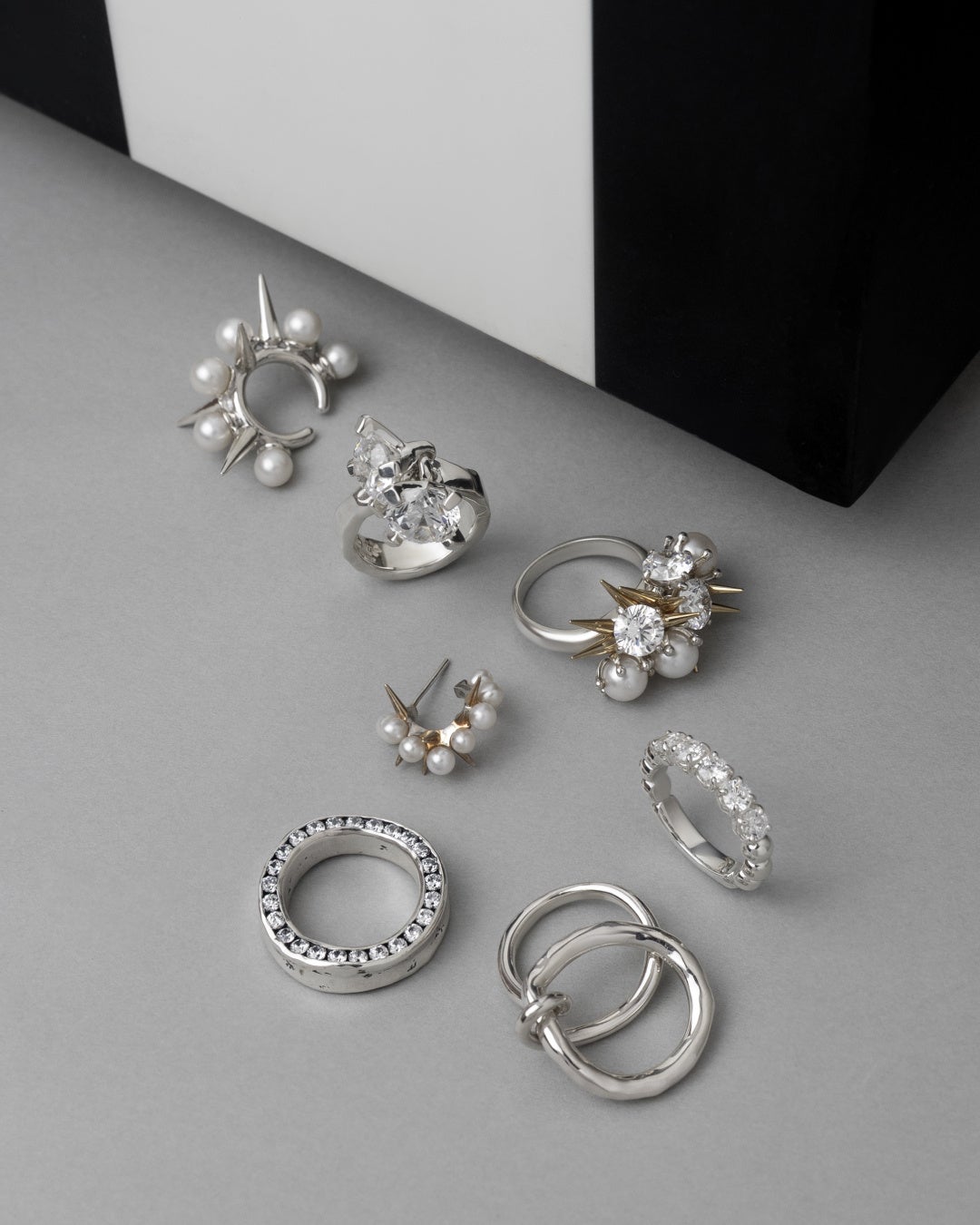 ブランドを象徴する、キュービックジルコニアやスタッズがあしらわれた高感度なジュエリーを展開します。