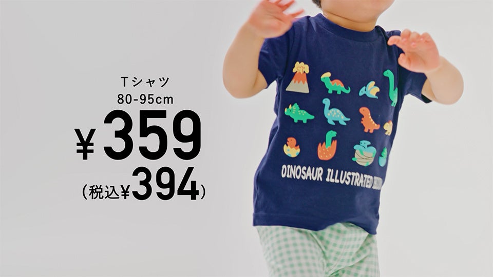 ベビーサイズ(80~95cm)の半袖Tシャツとレギンスに焦点を当てています。昨年から変わらない価格の359円(税込394円)でご提供しており、豊富な色、形、柄の展開を通じて、お子さまにとって「どれをとってもちょうどいいふく」であるエルフィンドールの魅力を、Tシャツに描かれた花や恐竜たちが飛び出して子供たちと戯れる楽しい映像を通じて伝えます。子どもたちの名前を呼んだり、好きな音楽を流したりしながらの撮影で、常に活気あふれる現場でした。