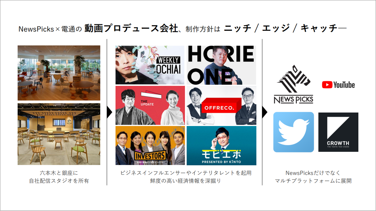 多くの著名人をキャスティングや報道番組のようなスタジオでの撮影、字幕や映像効果の付与など、多数の動画コンテンツを制作し高評価を得てきたNewsPicks Studios社の“NewSession”。