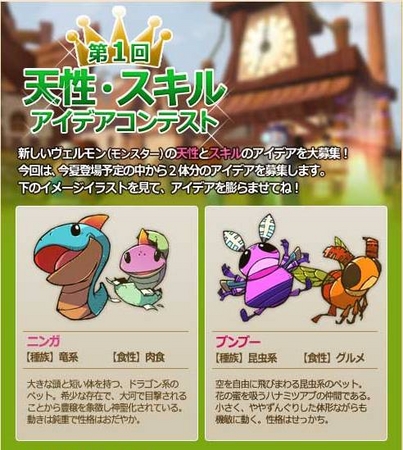第1回「天性・スキルアイデアコンテスト」では、今夏登場予定の新しいペット2体の、天性とスキルのアイデアを募集いたします。採用されたアイデアの応募者には、該当するペットの卵をプレゼントいたします。
