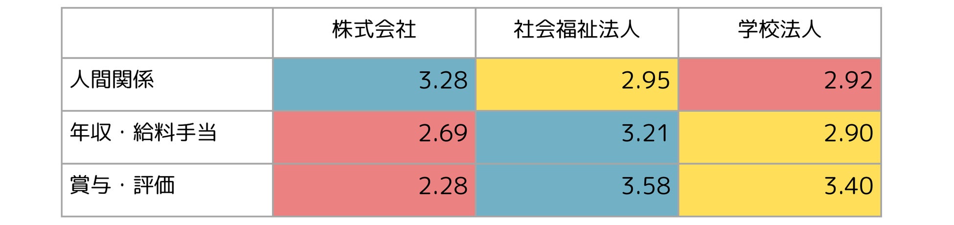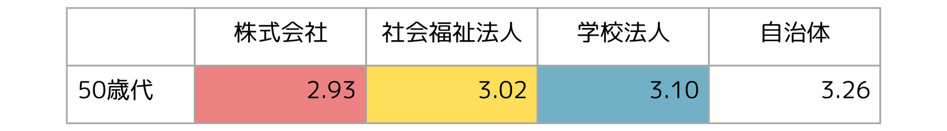 ●運営法人種別ごとの50代保育士職場評価(概要)