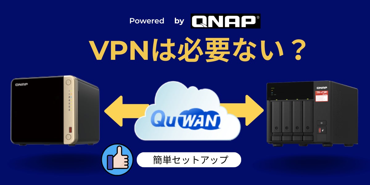 QNAPの「QuWAN(キューワン)」は、QNAPが提供する無料のSD-WAN(Software-Defined WAN)ソリューションで、VPNの代替として安全な拠点間ネットワークを簡単に構築できるサービスです