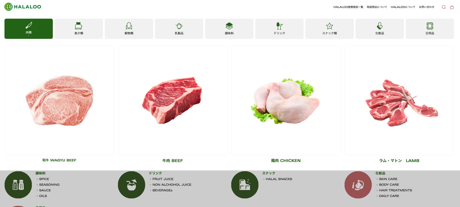 まずはブランド和牛、ハラルビーフ、国産チキン、海外ハラルチキン、調味料やお菓子などを第一弾として取り揃えながら、国内商品を中心に100社1000商品の品揃えを目指します。国内はもとより、イスラム諸国約50カ国へHALALOOをブランドとしての認知、事業者にとっては輸出や決済機能としても利用をしてもらうことで、国内販売の支援と輸出の基盤を作り、海外事業も同時に活性化させることを目標に両社は一致しました。