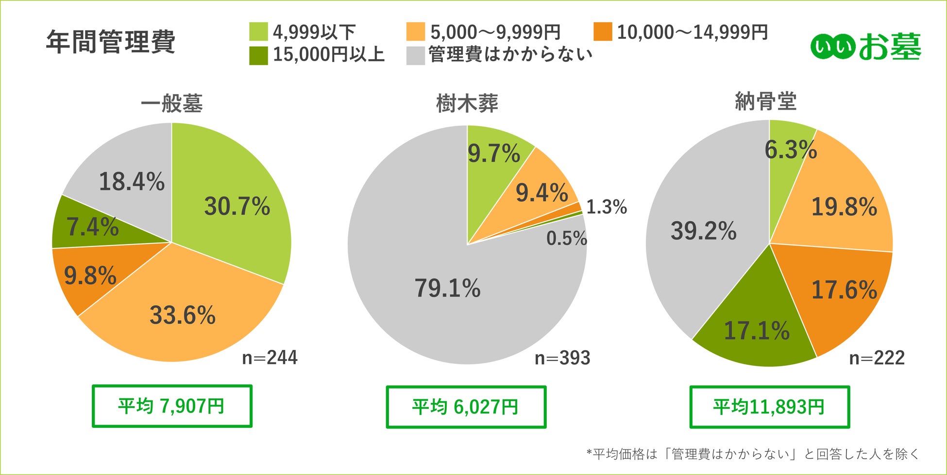 4.平均年間管理費は一般墓7,907円、樹木葬6,027円、納骨堂11,893円