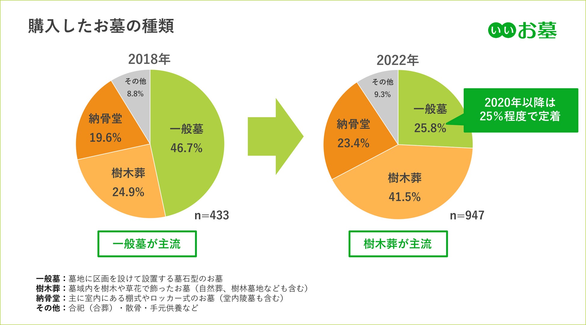 ▼一般墓:2020年以降は25%程度で定着