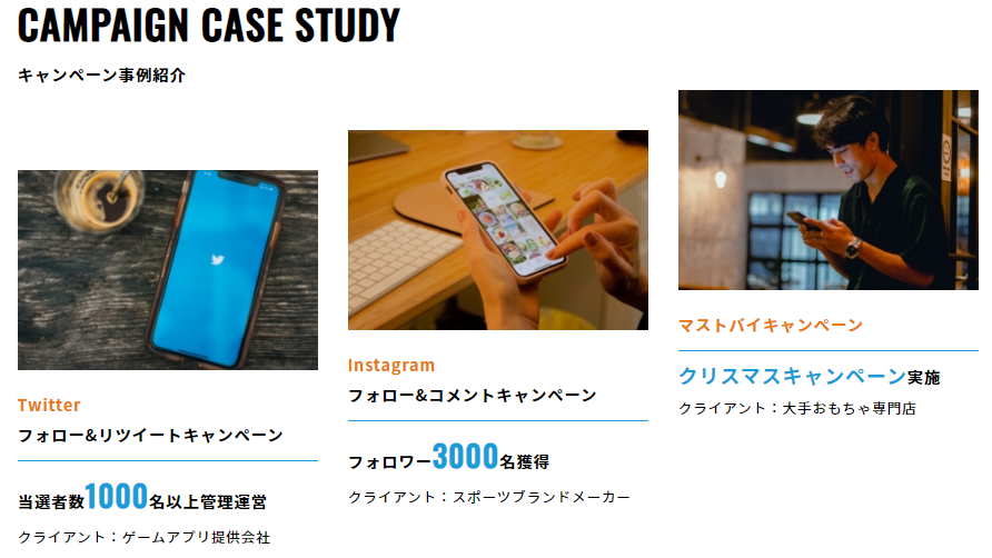 当社が創業以来、SNS運用・WEBマーケティングをご提供し、キャンペーン制作業務も担当させて頂きました。お客様からキャンペーンサイト制作からプロモーション(広告)、事務局開設/運用のご依頼を頂くことが多く、この度正式にSNSキャンペーン運用代行サービスの提供を開始致しました。