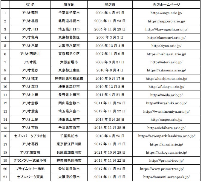 アリオ・グランツリー武蔵小杉・プライムツリー赤池・セブンパーク天美の新しい展開にご期待ください。