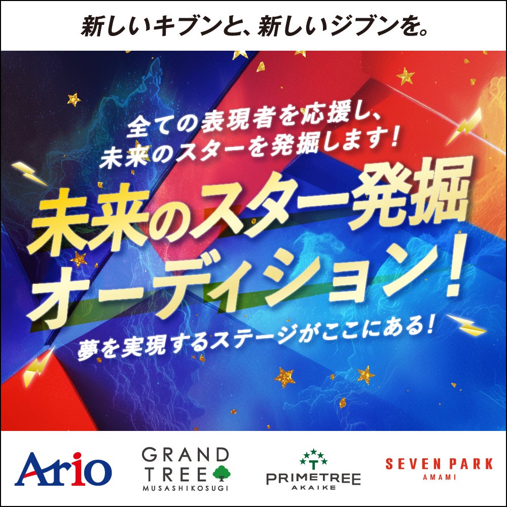 未来のスターを発掘し、夢へのチャレンジのステージをアリオ・グランツリー武蔵小杉・プライムツリー赤池・セブンパーク天美がお届けします。