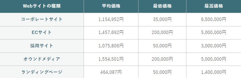 最低価格は3万円台から、最高価格は650万円まで。Webサイトの種類によって異なるので、それぞれ見ていきましょう。