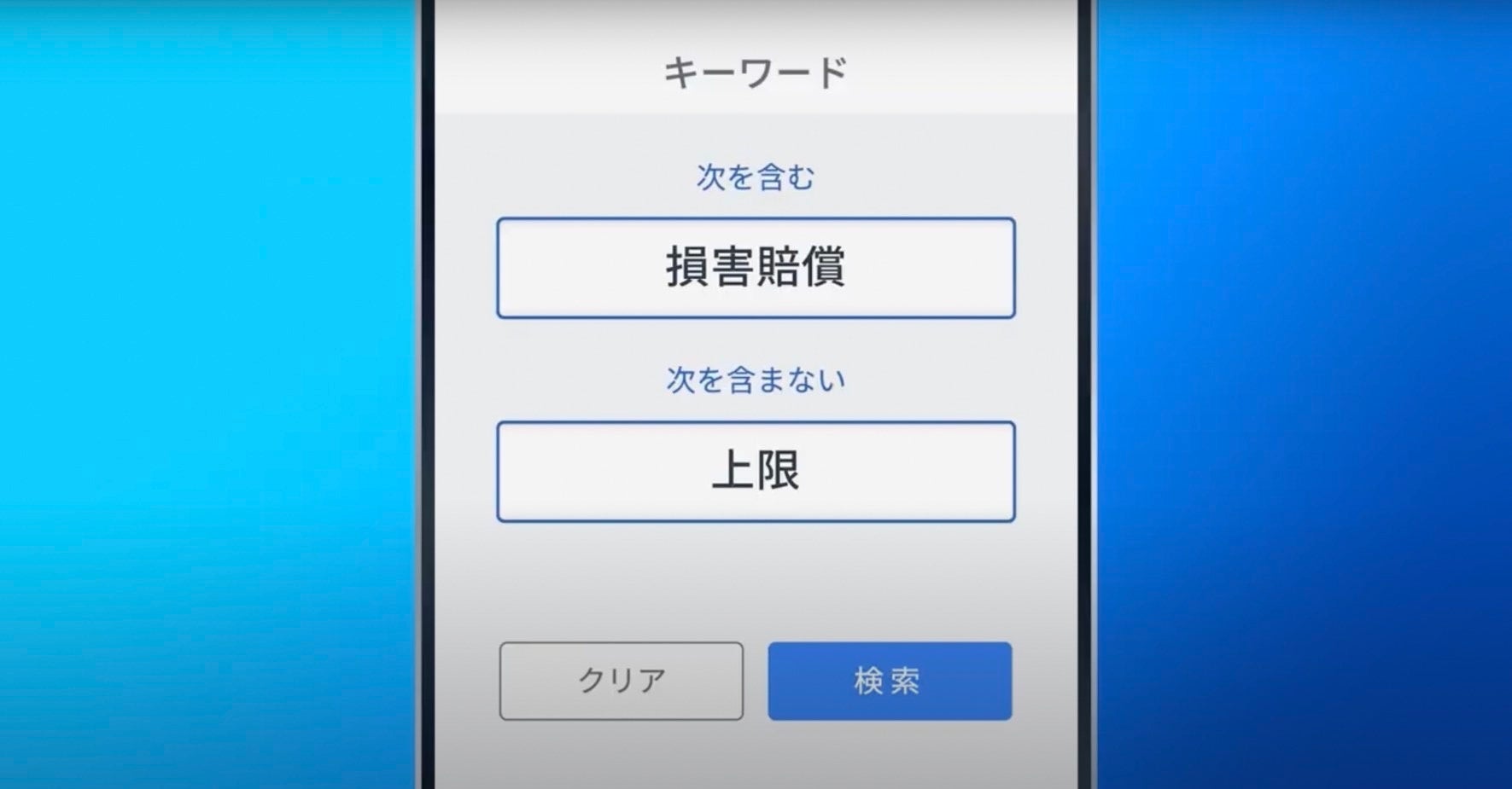 キーワードによる全文検索機能を使うと、契約書の中から必要なものを探し出すのもかんたんです。