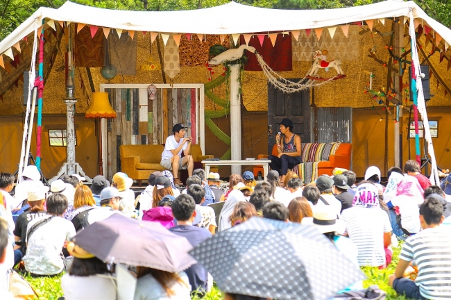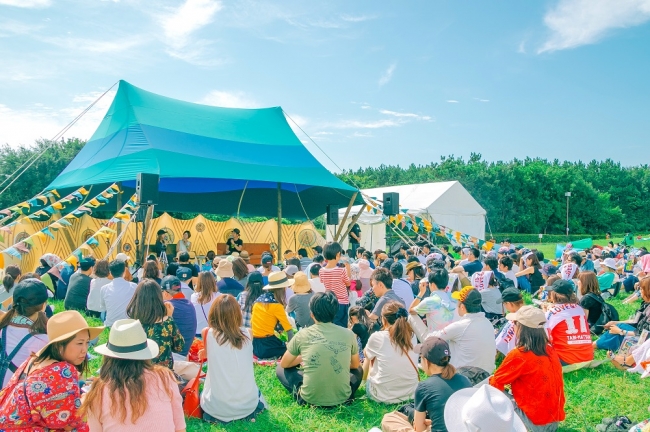 開放感溢れる音楽ライブやパフォーマンス。多種多様な学びと発見のあるトークセッション。明るい未来への思いがこもったマーケット。ゆっくりと時間の流れる心地よい空間で、価値観の合う仲間たちと出会い。楽しくご飯を食べて、お酒を飲み、芝生に寝っ転がったり、語り合ったり。