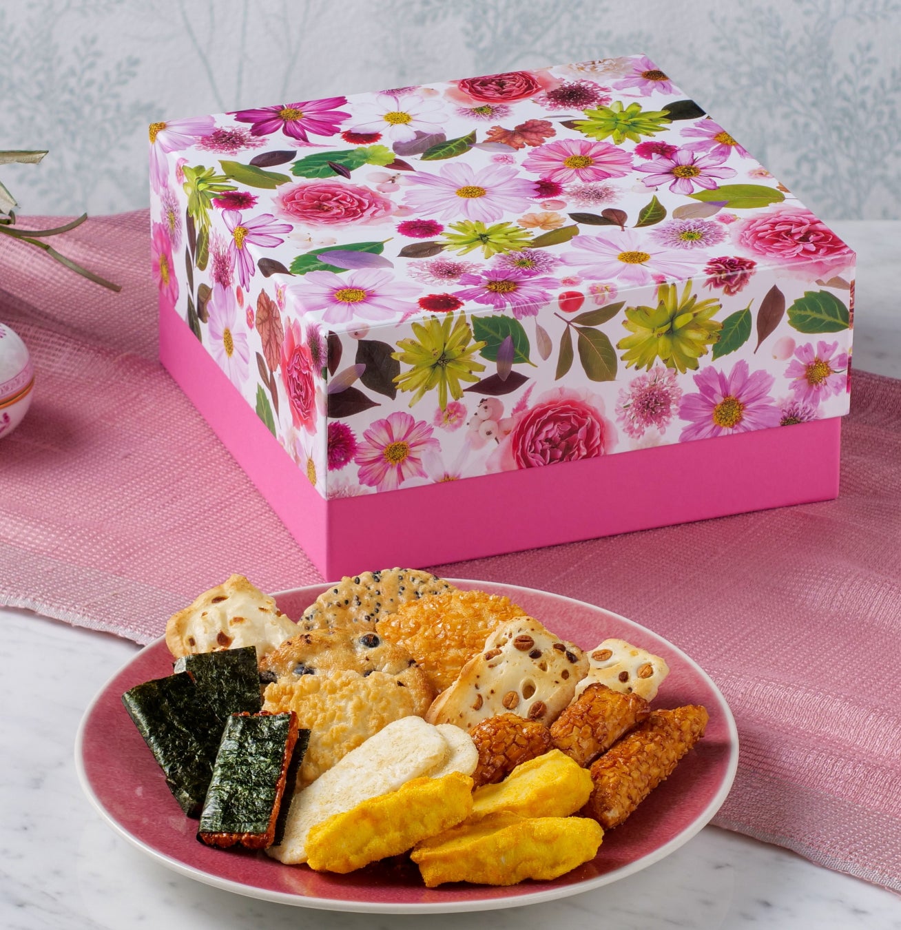新潟・長岡の豊かな自然に育まれた弊本舗は、おせんべいやおかきはもちろん、詰め合わせるパッケージにも季節感を大切にしています。