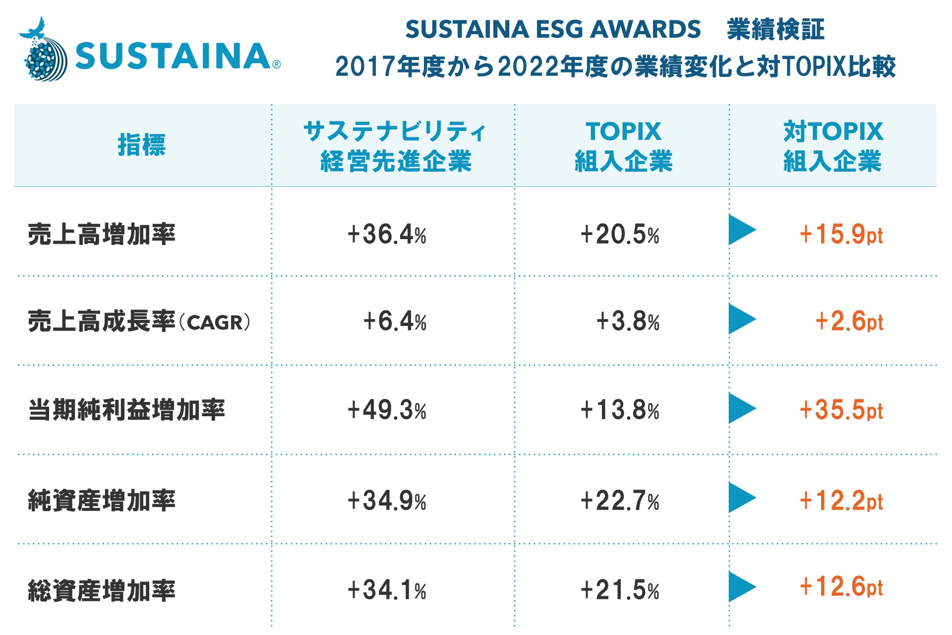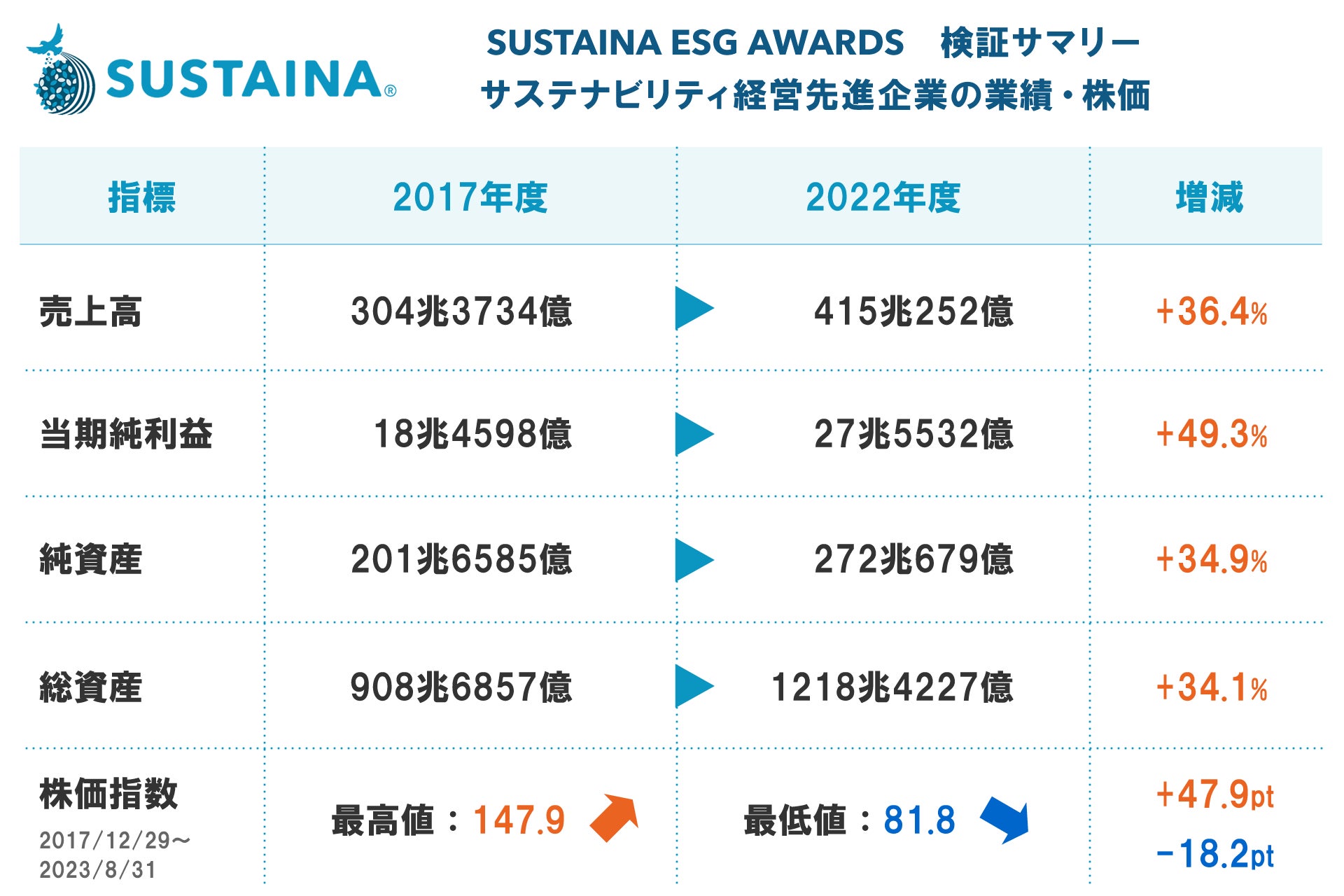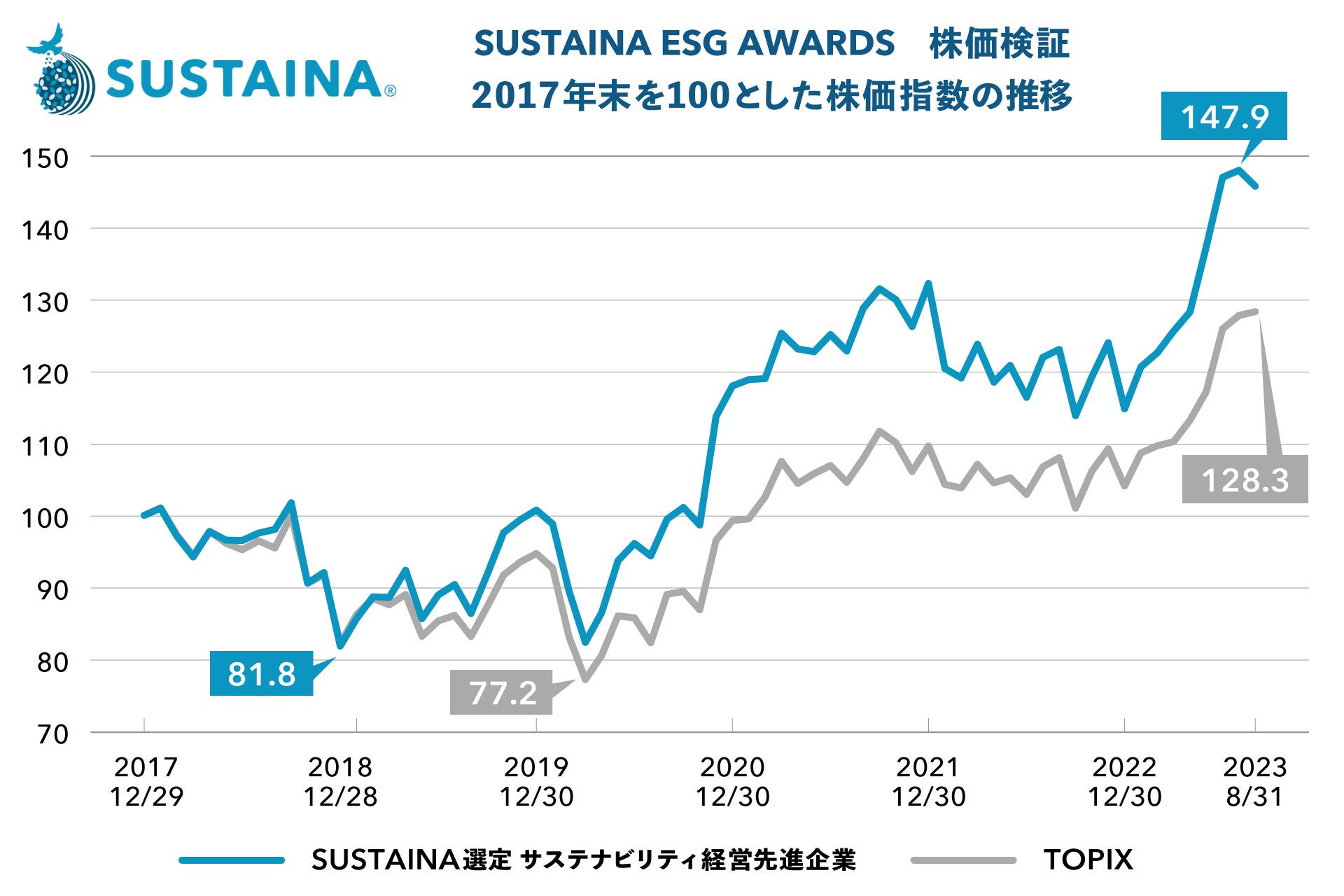 サステナ、「SUSTAINA ESG AWARDS」の検証結果を発表--ESG評価の高い企業を選定した「サステナビリティ経営先進企業」、業績・株価ともにTOPIXを上回る