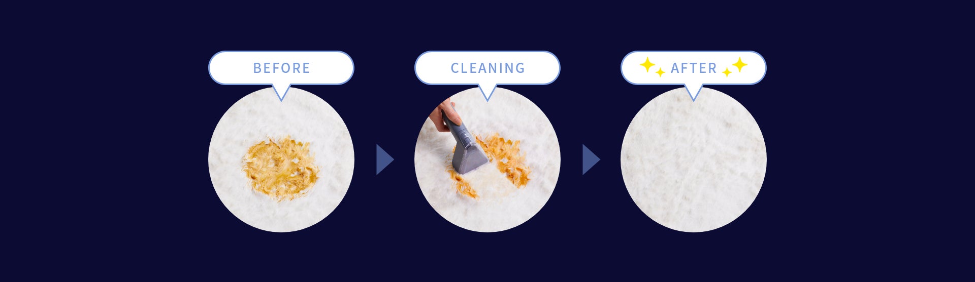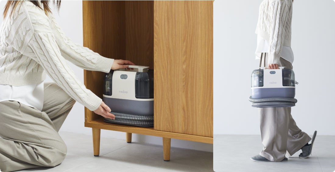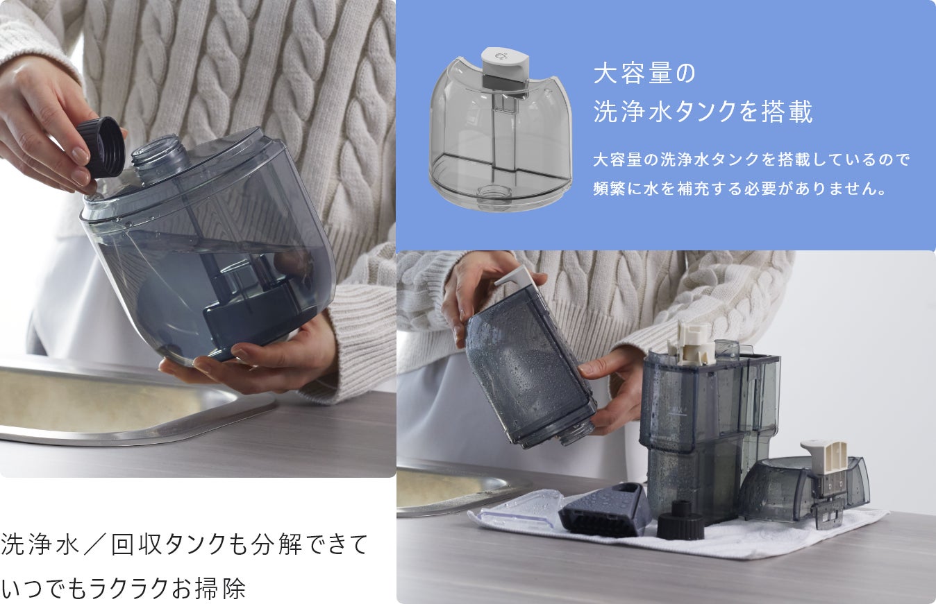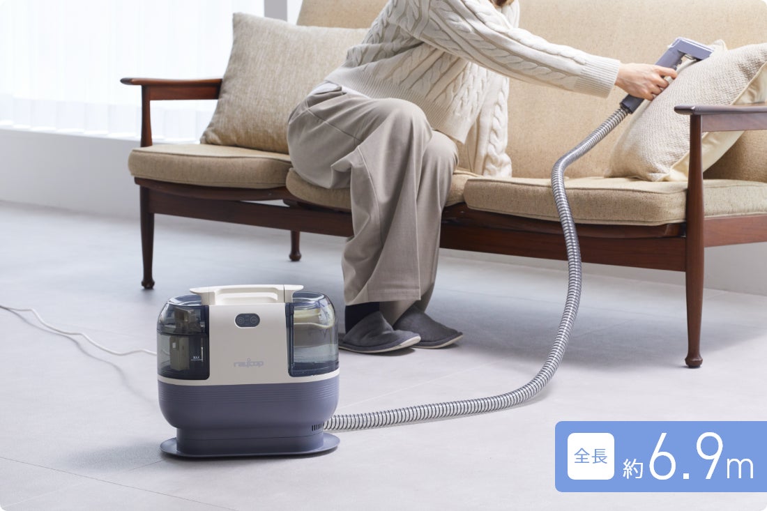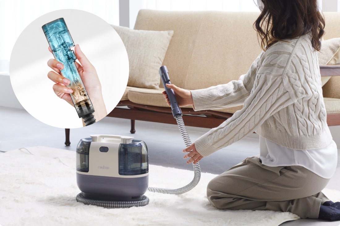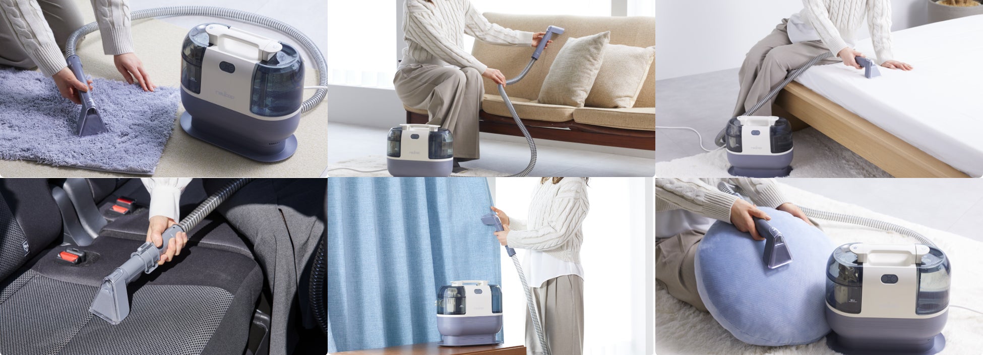 洗剤は使わず、水と3段階に設定できる熱の力だけで、今まで落としきれなかったしつこい汚れをしっかり落としてくれます。ソファやカーペットだけでなく、車のシートにも使えます。