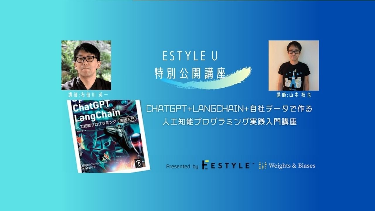 エスタイルでは、未経験から一人前のデータサイエンティストに成長できる教育プログラム「ESTYLE U(エスタイル ユニバーシティ)」を開催しています。今回記念すべき初となる公開講座は、人工知能プログラミング実践入門講座。『OpenAI GPT-4/ChatGPT/LangChain 人工知能プログラミング実践入門』の著者である布留川英一氏をお呼びして講座を行いました。