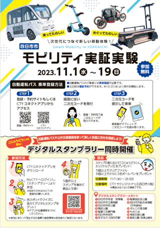 四日市中央通りにおける魅力的なまちなかの実現を目指して自動運転EVバスを活用したモビリティ実証実験へ参加~デジタルスタンプラリーによるMaaS実証実験も同時実施~