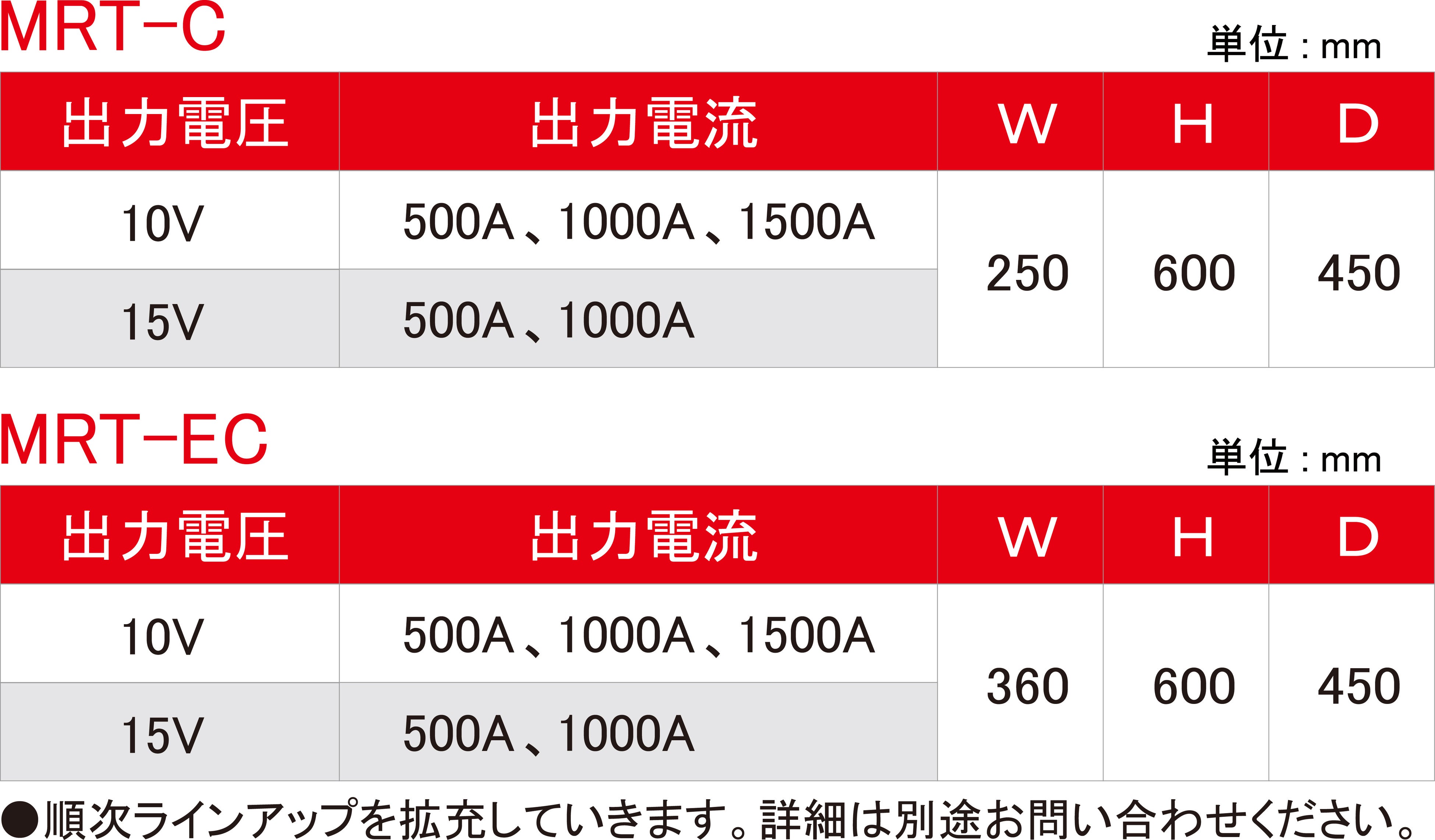 MRT-C:スタンダードモデル、MRT-EC:高効率モデル
