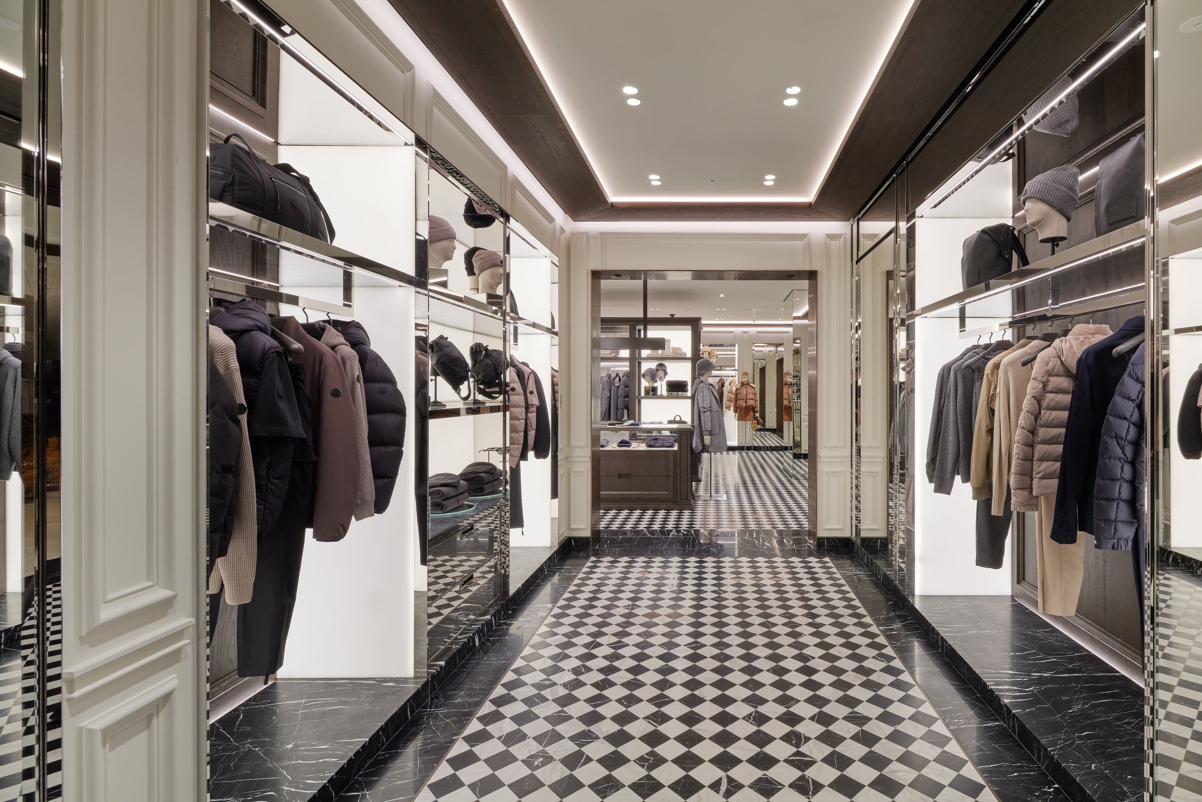 モンクレールの長きにわたるパートナーであるパリの建築家、Gilles & Boissier(ジル&ボワシエ)がデザインした新宿髙島屋店は、モダンホワイトのアクセントを基調とし、クラシックなアンティークオーク材のボワズリーが特徴となっています。ファサードのアイコニックなレタリングパネルは、建築家 アントニ・ガウディが設計したサクラダ・ファミリアのエントランスのブロンズのディテールからインスピレーションを得ています。