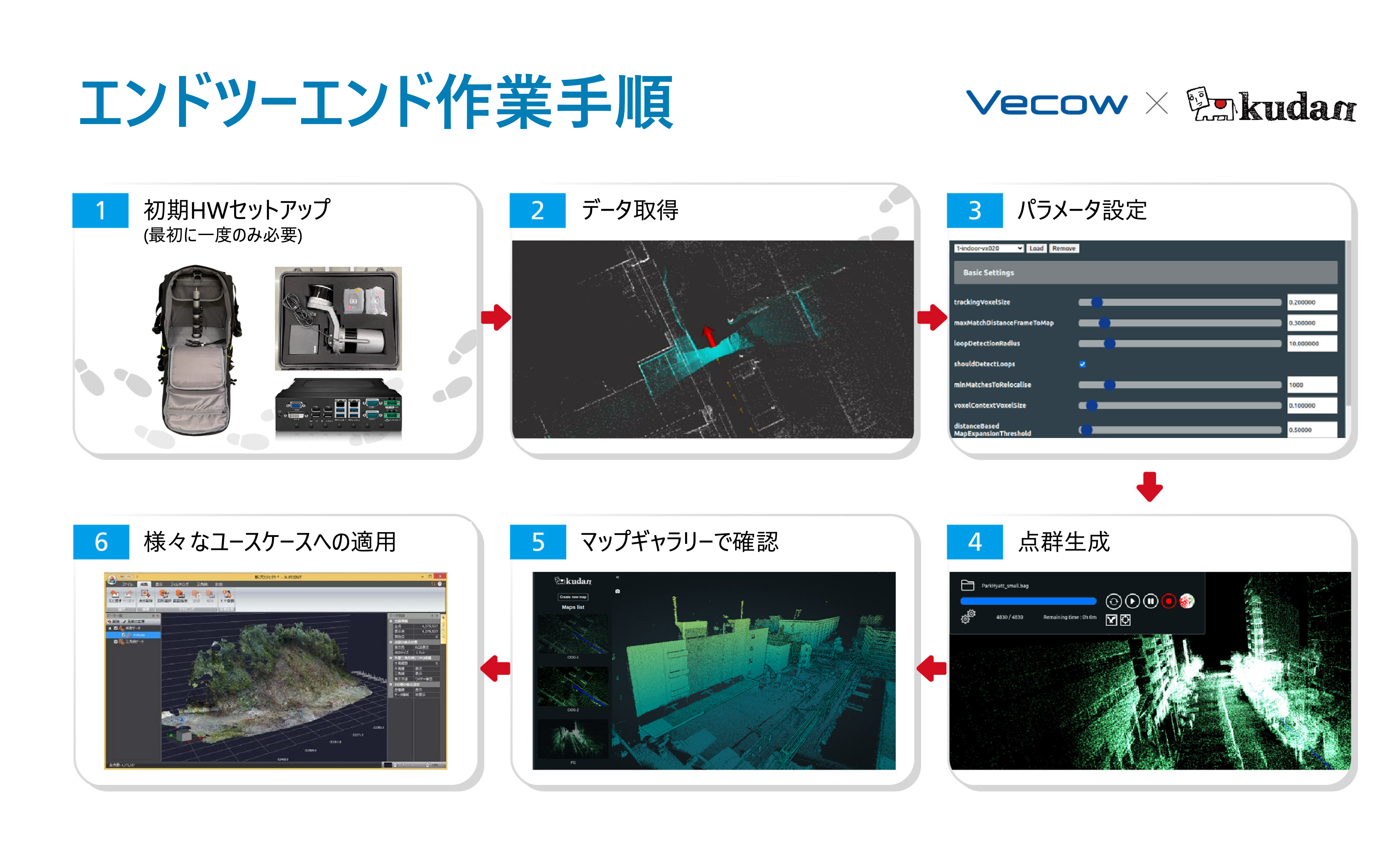 モバイルマッピング開発キットの提供開始は、前回のリリース(※参照:Kudan、Vecowとの戦略的パートナーシップを拡大、屋外向け自律移動及びモバイルマッピングアプリケーションの高まる需要に対応)で発表したKudanとVecowのパートナーシップ拡大における最初のマイルストーンとなります。