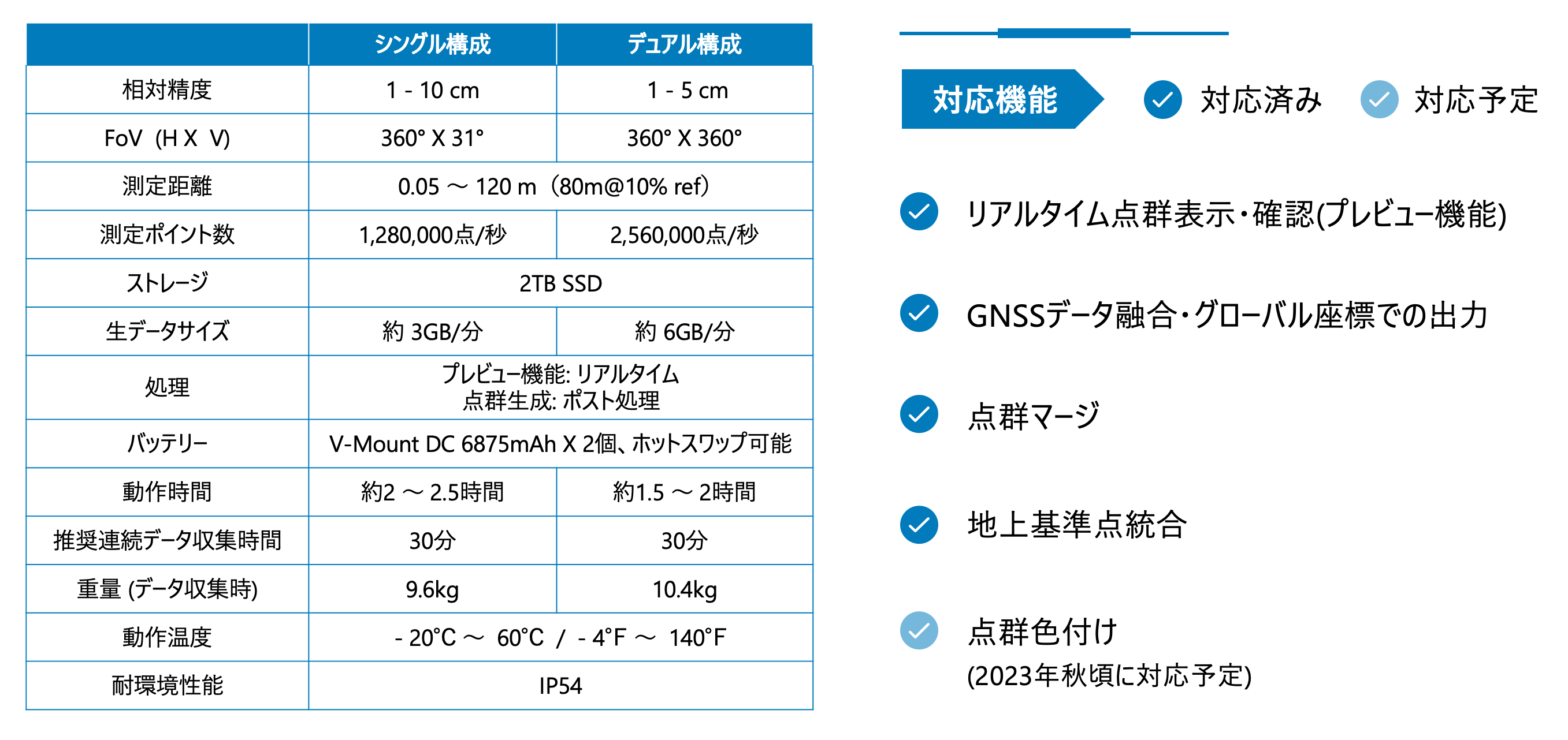 <Kudan/Vecowのモバイルマッピング開発キットの仕様詳細>