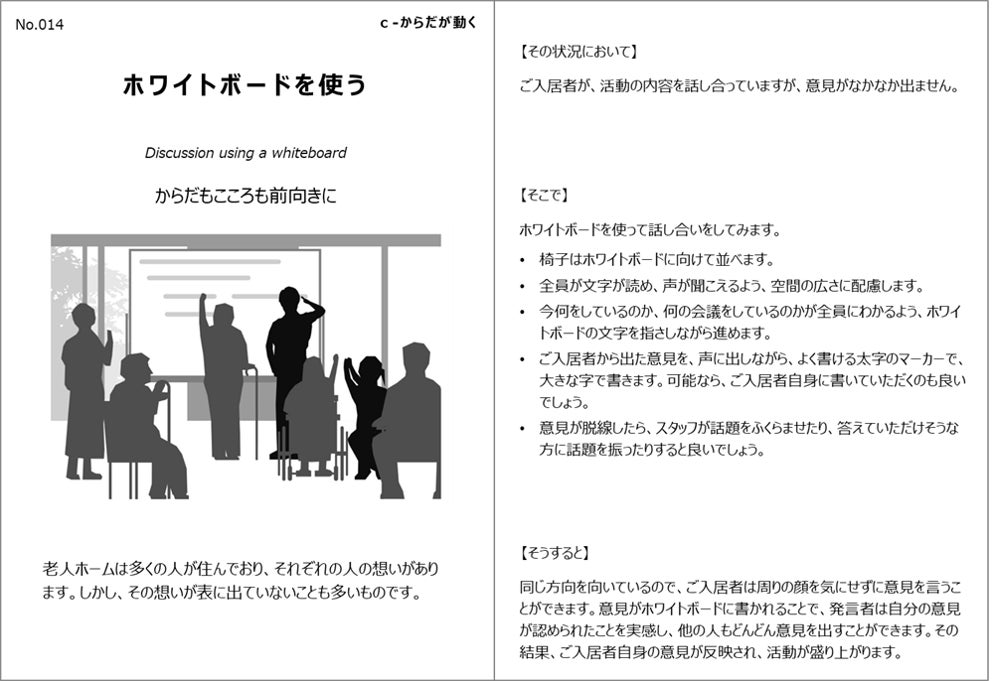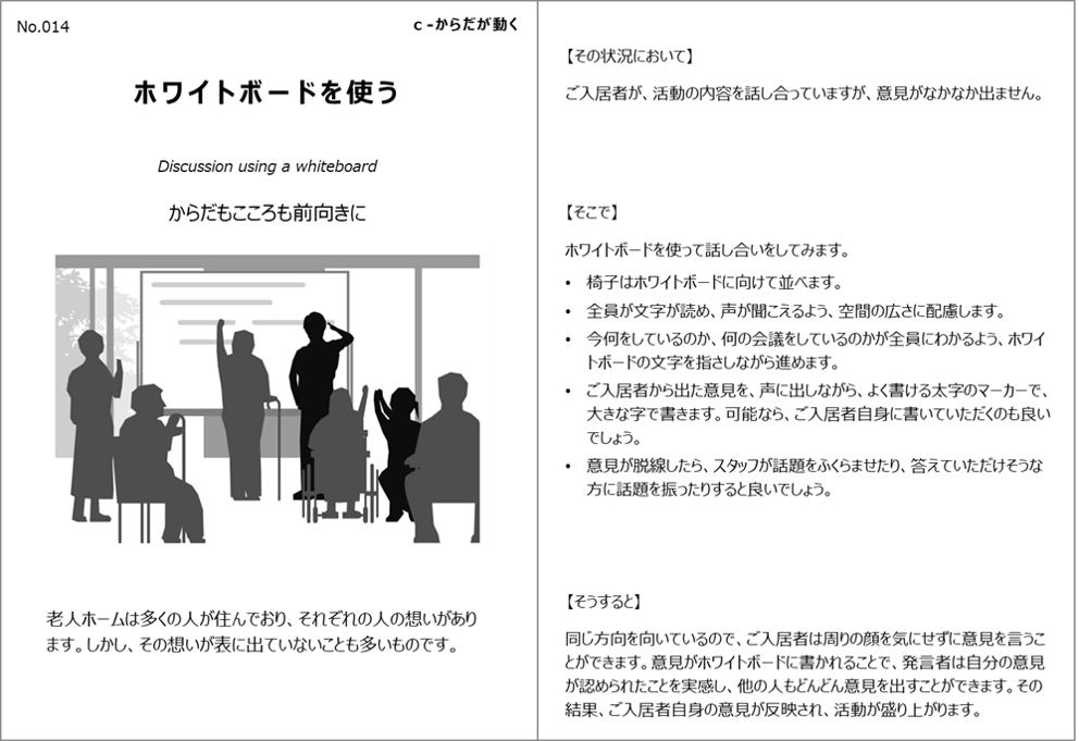 図2:認知症ケアメソッド®の例(上:日本語版、下:英語版)